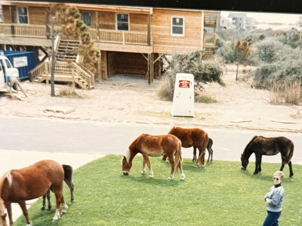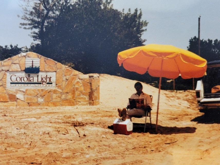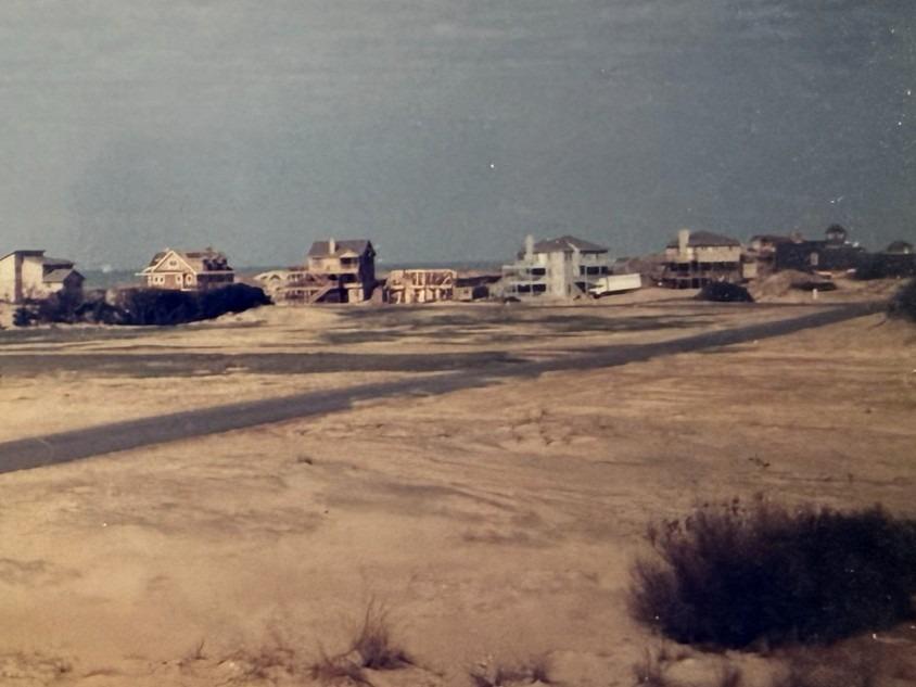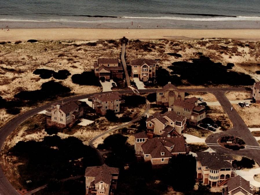 That same year, Dick Brindley began selling lots at Corolla Light Resort, a dramatically different idea for the Outer Banks: a community stretching from ocean to sound, with amenities exceeding anything then found in the region, and focusing attention on an area off-limits to most visitors until 1984. Sales were handled from a trailer on Austin Street, and there was construction everywhere: pipes for community water and sewer, retention ponds, and a large oceanfront pool complex. Houses began to emerge, but development was slow due to labor challenges (some things never change!).