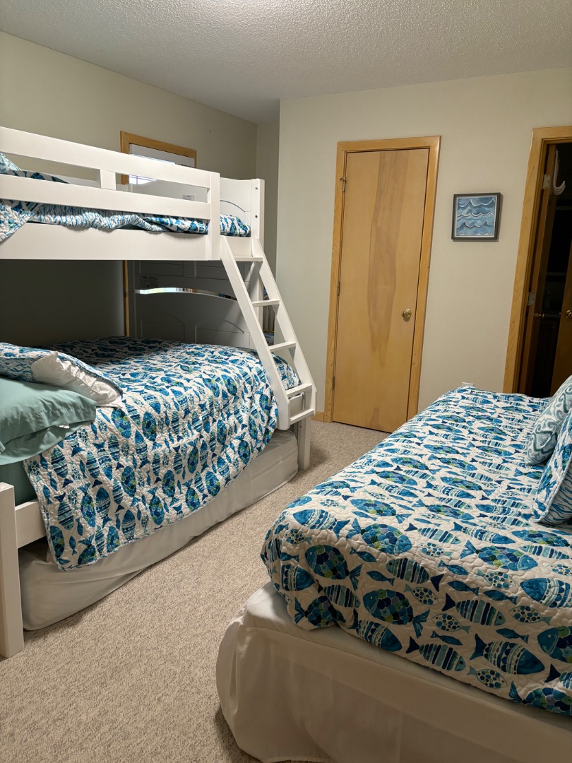 Ground Level: Outside you’ll find a gas grill, hot tub, deck and enclosed outdoor shower. Inside you’ll find a large rec room with a foosball table, TV/DVD, twin over full bunkbed, and a half bath.