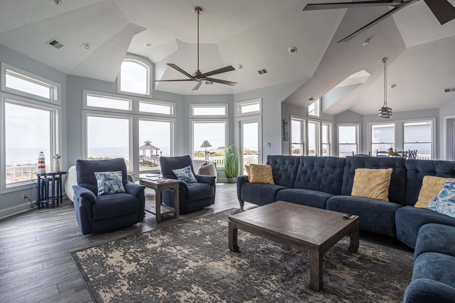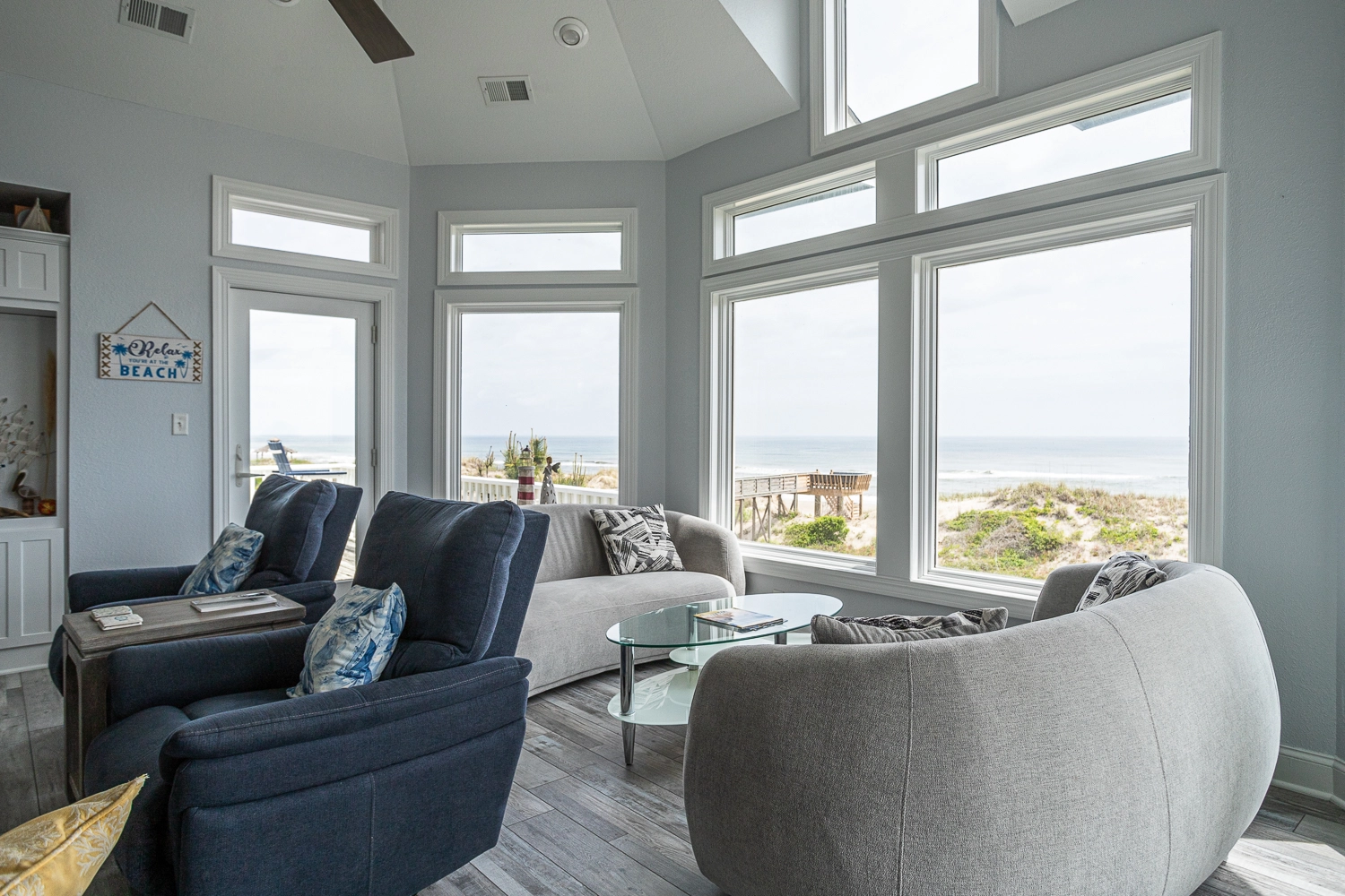 “Azure Dreamin’” about long beach days, this oceanfront home awaits you! Located directly on the beach, this well-appointed vacation home offers both comfort and convenience. The community walkway to the beach with a gazebo is right next to the home, and Corolla Light’s oceanfront complex, featuring multiple community pools, is just a short stroll from the home.