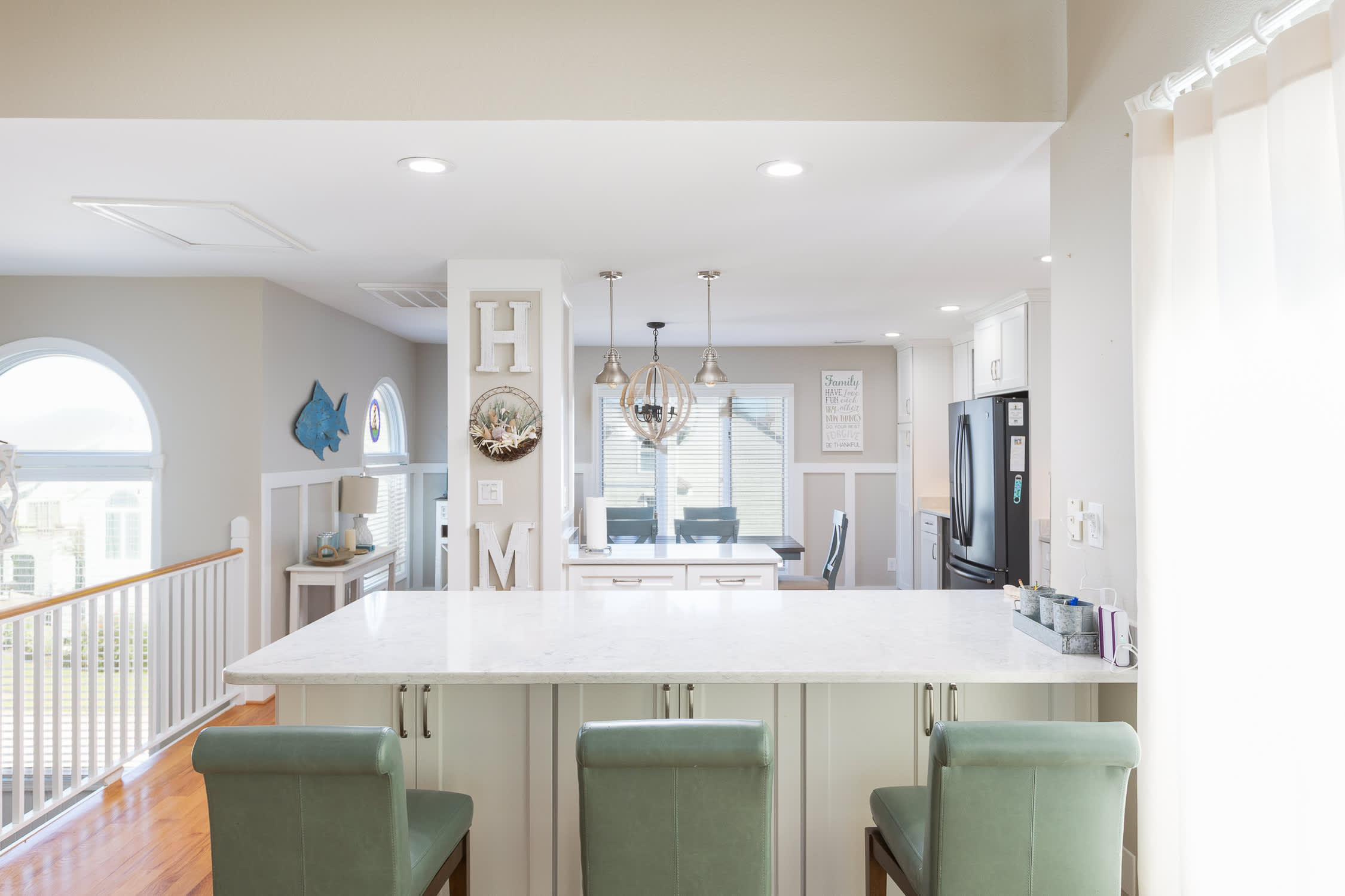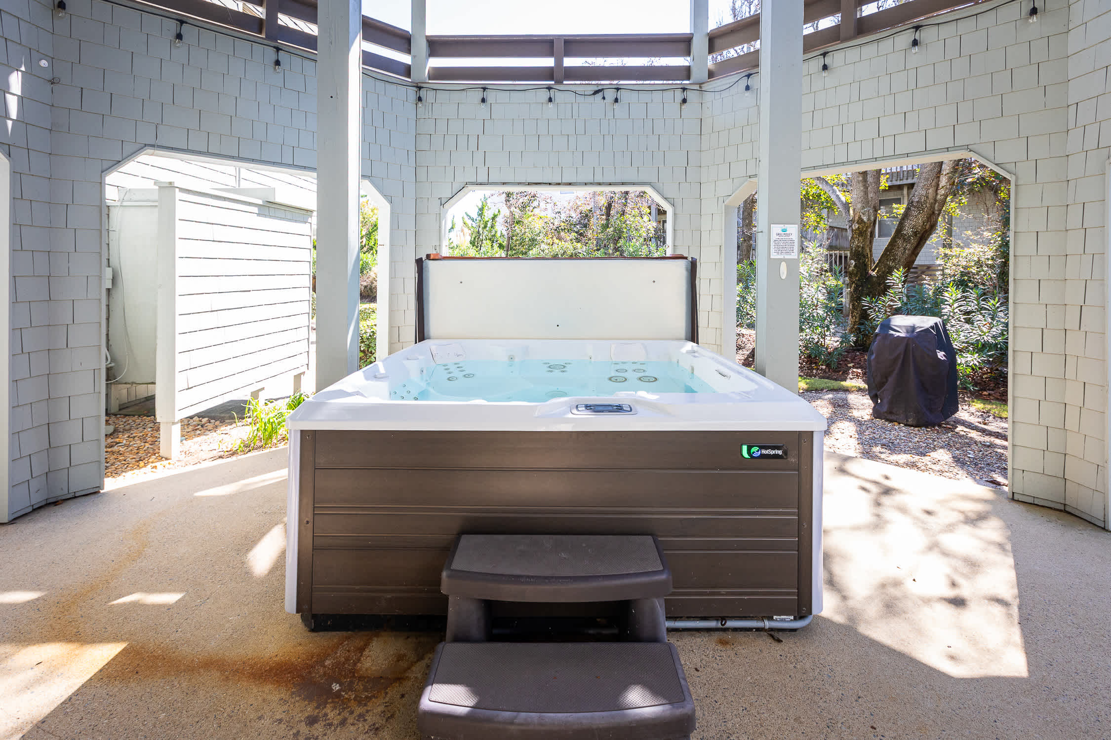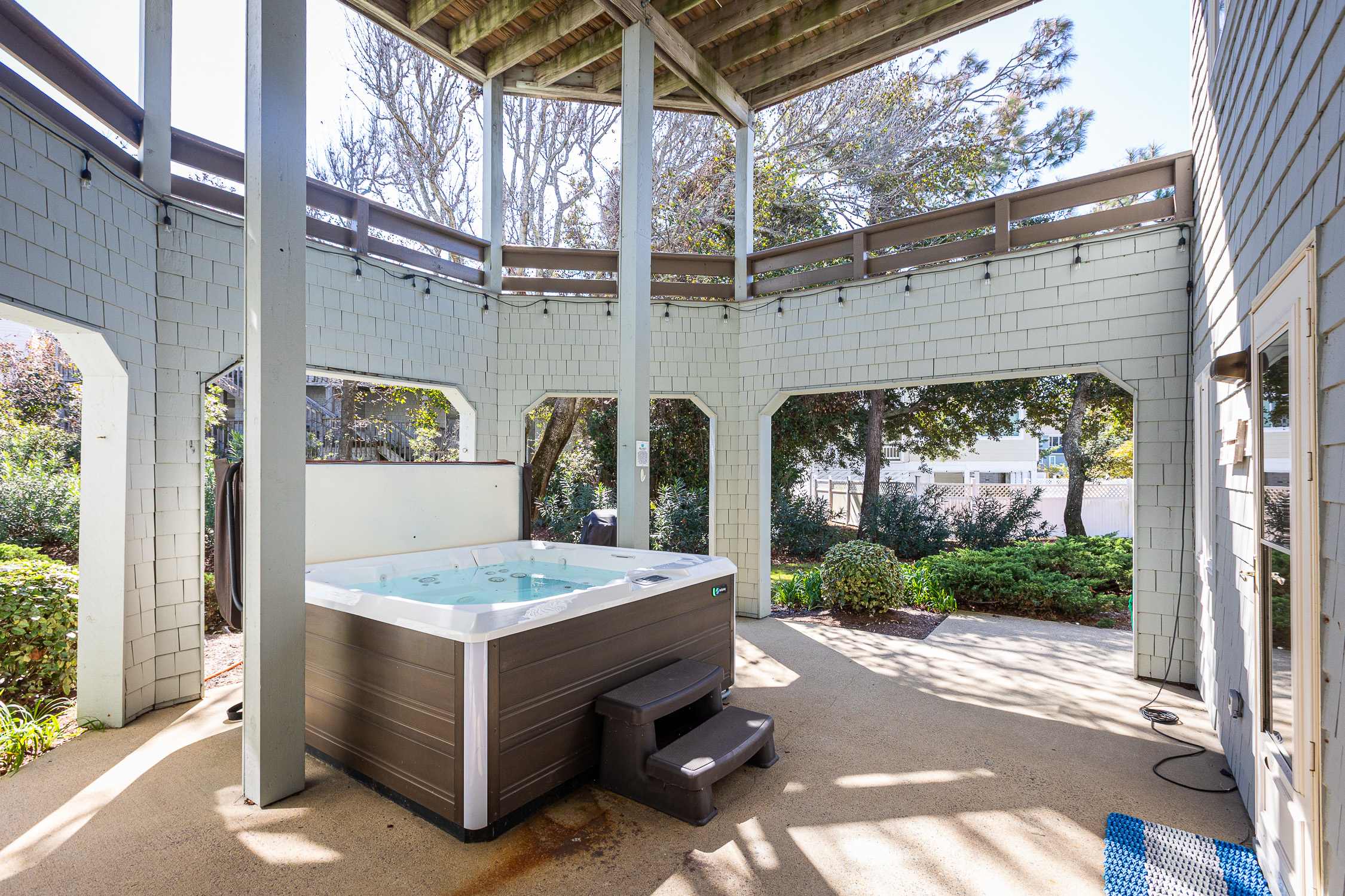 Come on to the Bright Side of the Road! This spacious, multi-level beach home is the perfect retreat for families or groups looking to relax and unwind by the coast. Just a quick 4 minute walk to the beach, you’ll be close enough to enjoy the sand and surf anytime you like. On the top level, you’ll find a cozy living room with a flat-screen TV, a desk for catching up on emails or journaling your trip, and access to the deck, perfect for enjoying that fresh salt air. The kitchen features a breakfast bar with seating for three and opens to a dining area with space for six, making it easy to gather for meals. A convenient half bath is also located on this floor.The mid level offers two King primary bedrooms, each with its own flat-screen TV and private en suite bathroom. You’ll also find a washer and dryer on this floor, so keeping up with laundry during your stay is a breeze.On the ground level, there’s a queen bedroom with a flat-screen TV and a full hall bathroom. Another bedroom includes a day bed with a trundle, a single sleep chair, a flat-screen TV, and direct access to the patio.Outside, kick back and relax on your private patio, complete with a hot tub and a gas grill, perfect for evening cookouts. There’s also parking available for up to four vehicles. Whether you're here for sun, sand, or just some time to unwind, this home has everything you need for a memorable stay.