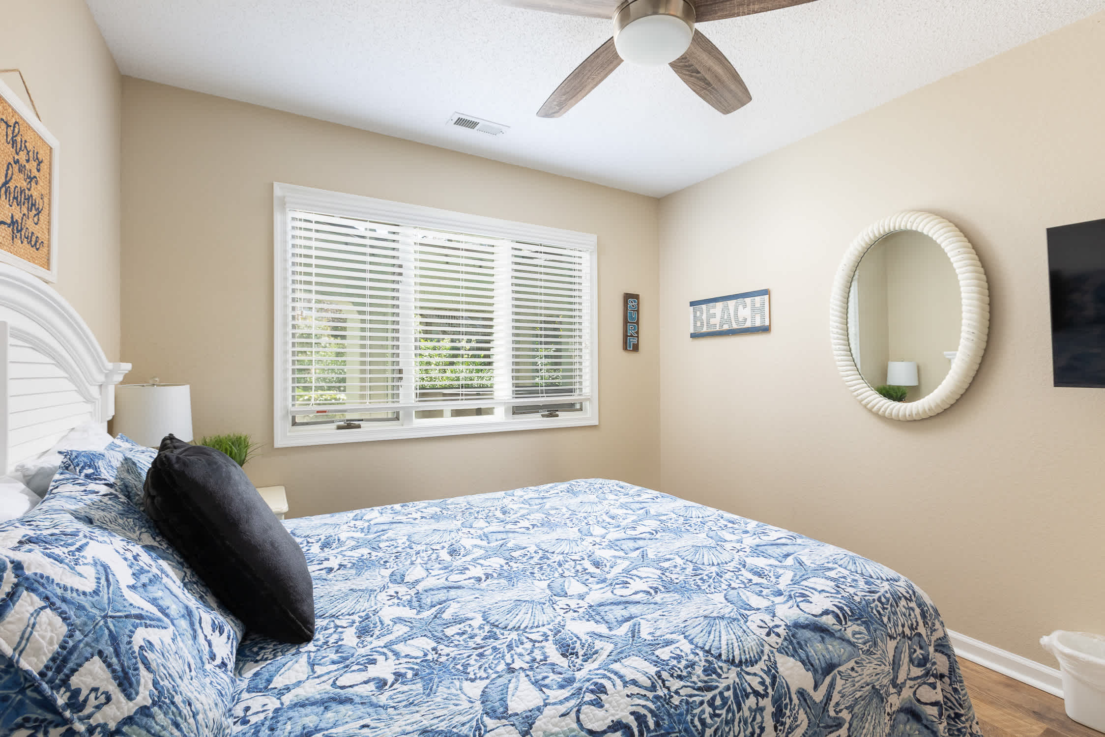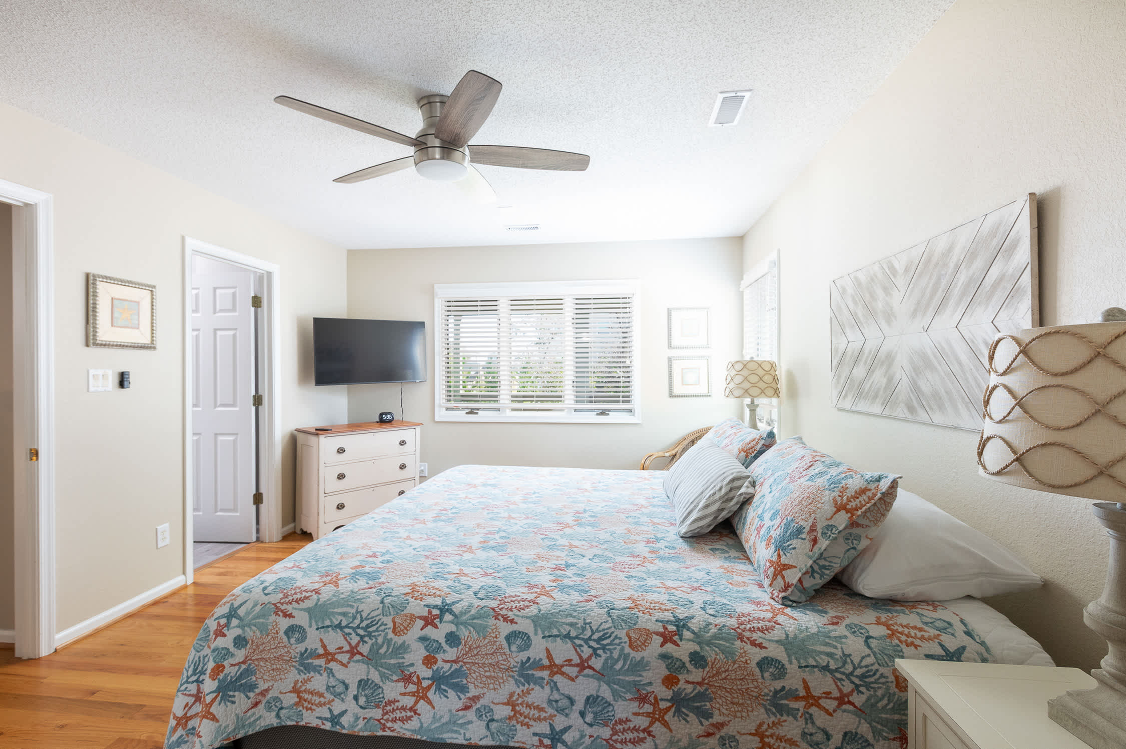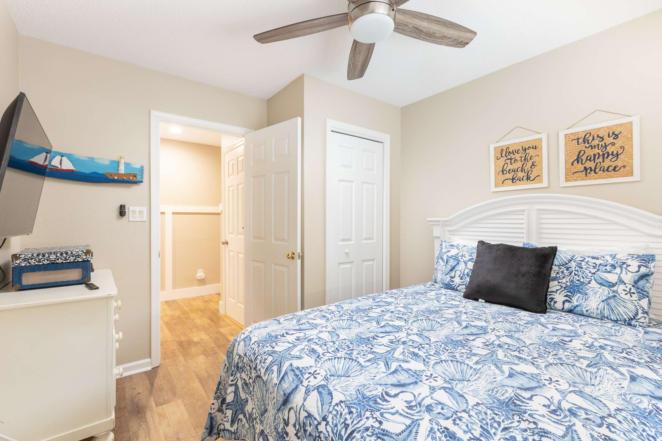 Come on to the Bright Side of the Road! This spacious, multi-level beach home is the perfect retreat for families or groups looking to relax and unwind by the coast. Just a quick 4 minute walk to the beach, you’ll be close enough to enjoy the sand and surf anytime you like. On the top level, you’ll find a cozy living room with a flat-screen TV, a desk for catching up on emails or journaling your trip, and access to the deck, perfect for enjoying that fresh salt air. The kitchen features a breakfast bar with seating for three and opens to a dining area with space for six, making it easy to gather for meals. A convenient half bath is also located on this floor.The mid level offers two King primary bedrooms, each with its own flat-screen TV and private en suite bathroom. You’ll also find a washer and dryer on this floor, so keeping up with laundry during your stay is a breeze.On the ground level, there’s a queen bedroom with a flat-screen TV and a full hall bathroom. Another bedroom includes a day bed with a trundle, a single sleep chair, a flat-screen TV, and direct access to the patio.Outside, kick back and relax on your private patio, complete with a hot tub and a gas grill, perfect for evening cookouts. There’s also parking available for up to four vehicles. Whether you're here for sun, sand, or just some time to unwind, this home has everything you need for a memorable stay.