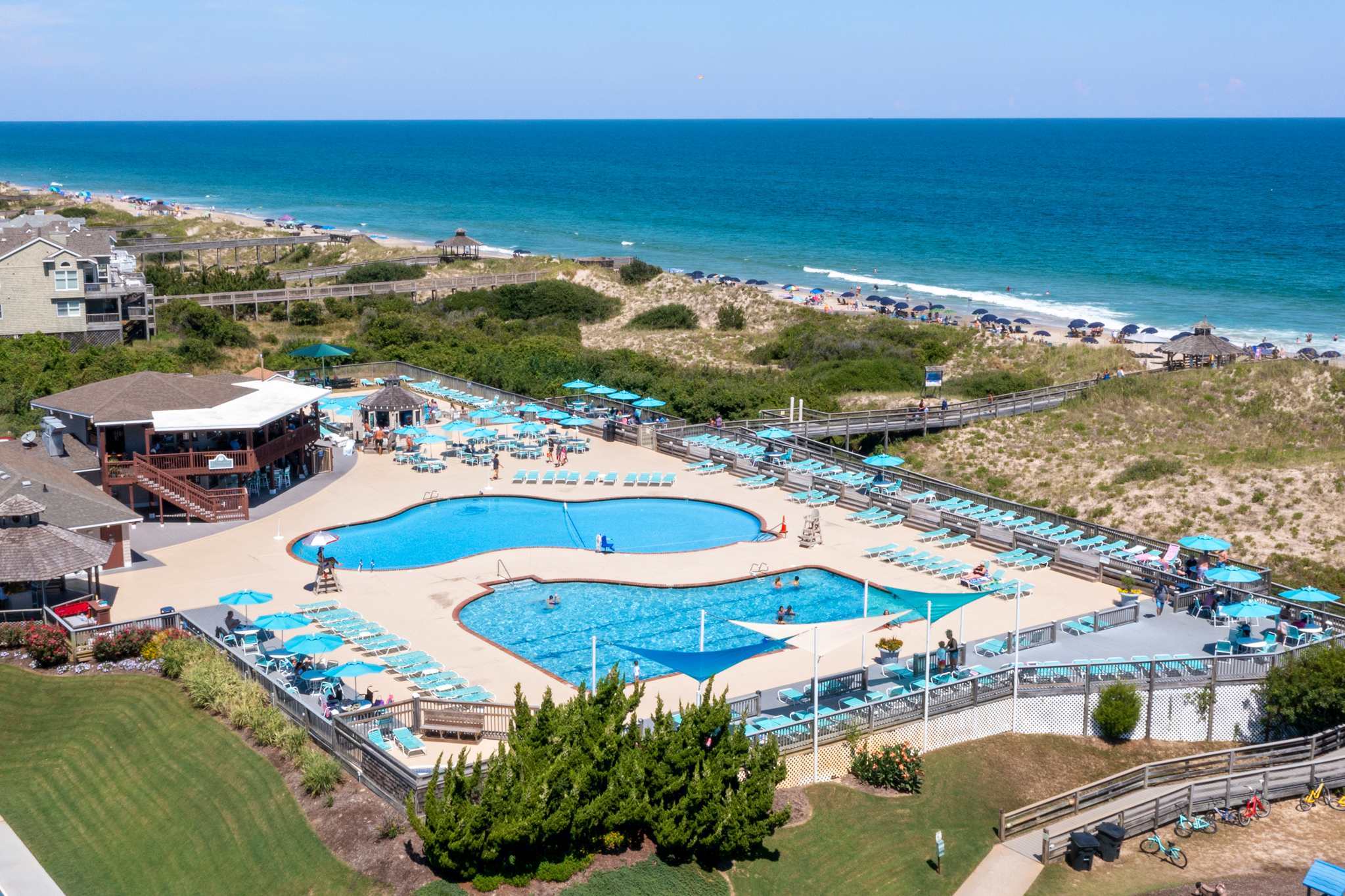 The beautifully landscaped Corolla Light resort features a host of daily scheduled activities and amenities for the entire family. With your stay at Bright Side Of The Road, you will enjoy the Oceanfront Complex, complete with the Oceanfront Grille Restaurant, a snack shack, beachfront wait service, three primary pools plus a baby pool, lighted basketball courts, sand volleyball, shuffleboard, two playgrounds, and a putting green. Corolla Light also features numerous lighted tennis (clay and hardcourt available) and pickleball courts throughout the resort, as well as the northern Outer Banks largest fitness center with a 25-yard pool, hot tub, sauna, free weights, weight machines, cardio equipment, racquetball, table tennis, and more.