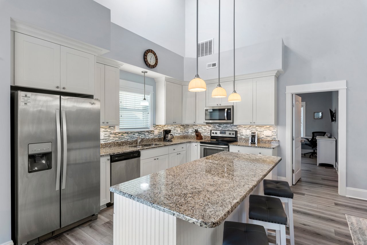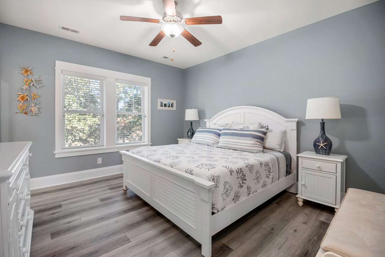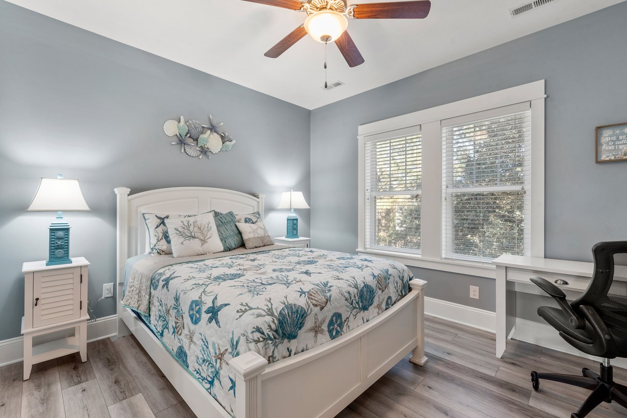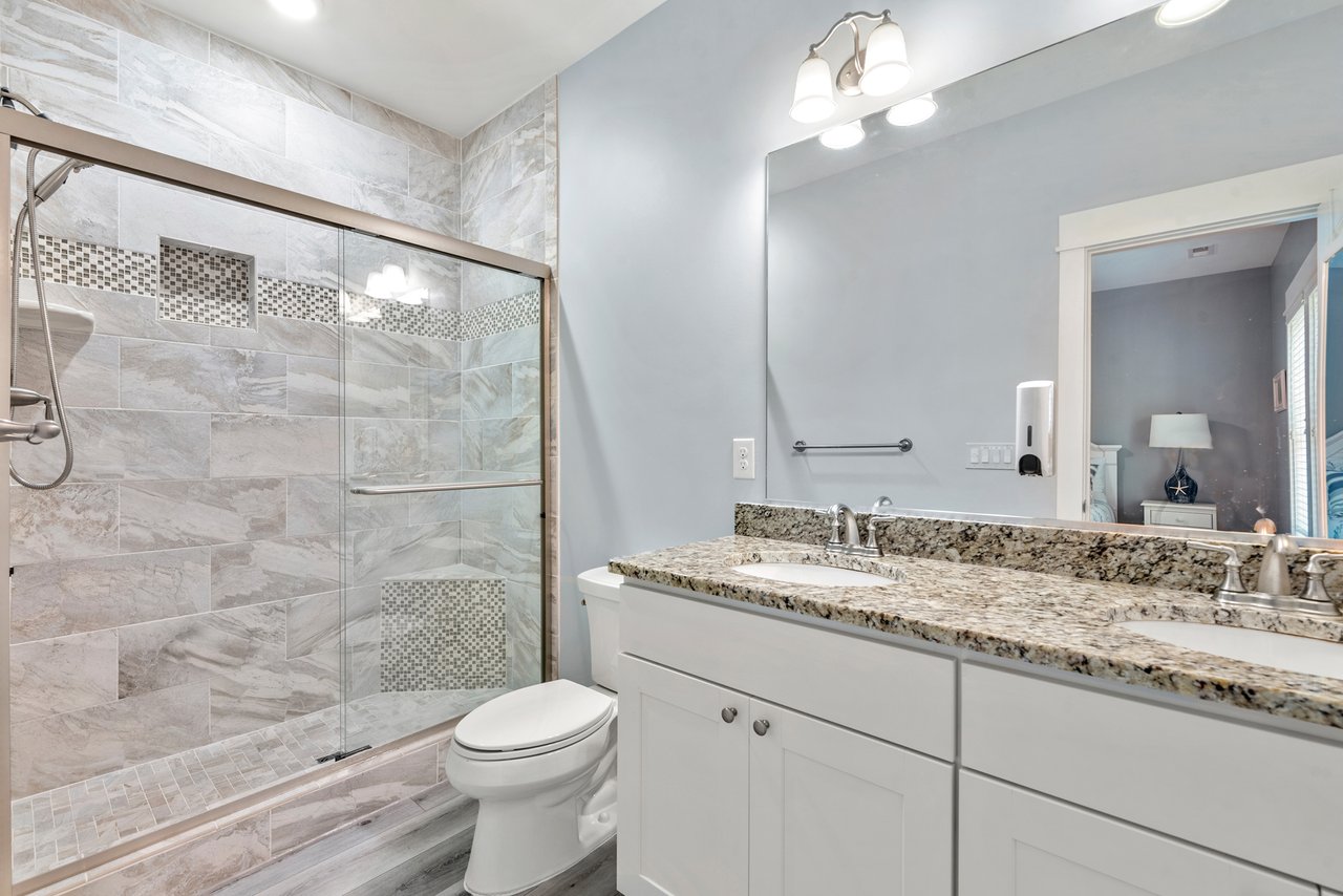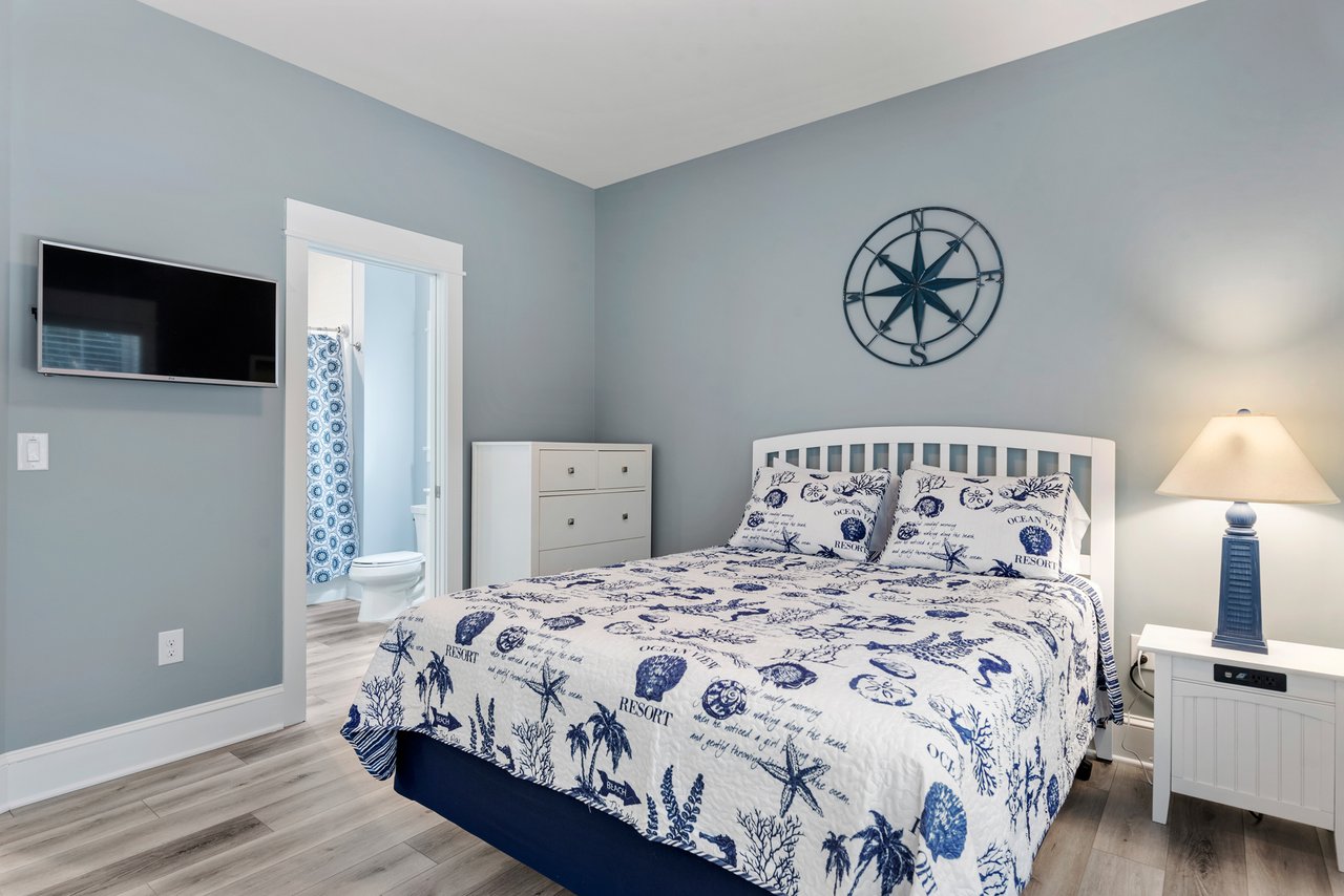 Sunset Villa boasts bright and inviting custom paint and brand new LVP throughout the entire unit. Completely refurnished, including all new beds and bedding, every room has been meticulously decorated in a coastal theme, setting the stage for your perfect and comfortable stay. With four bedrooms, each with its own ensuite and smart Roku TV, as well as an additional half bath on the main floor gathering area, every member of the family is sure to find their perfect spot.