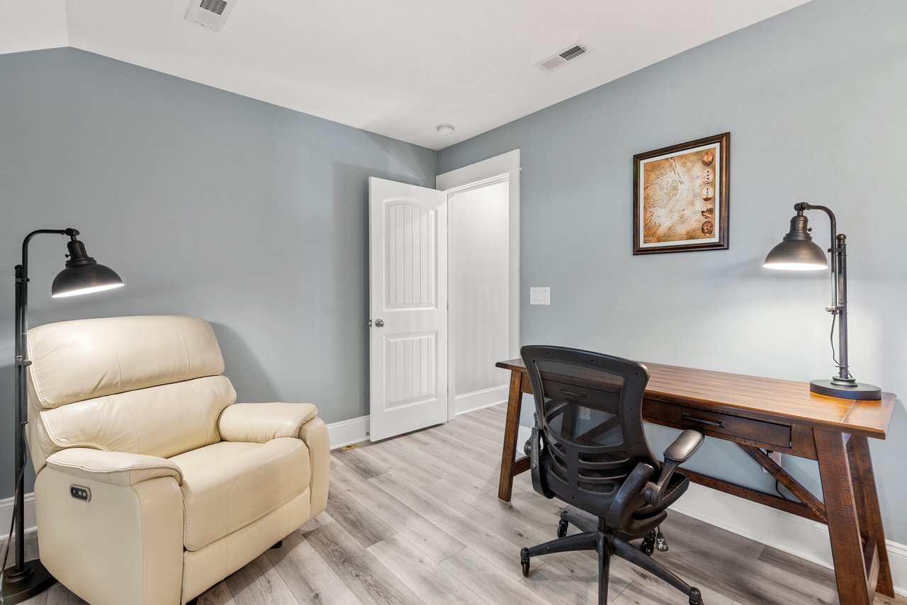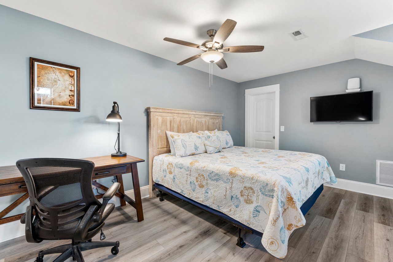 Situated on the top floor, you’ll find an additional ensuite king bedroom that is sure to delight those that need to do a bit of work from home or getaway from all the commotion below! This suite boasts a beautiful working desk/chair, cozy window seat, and new leather glider.