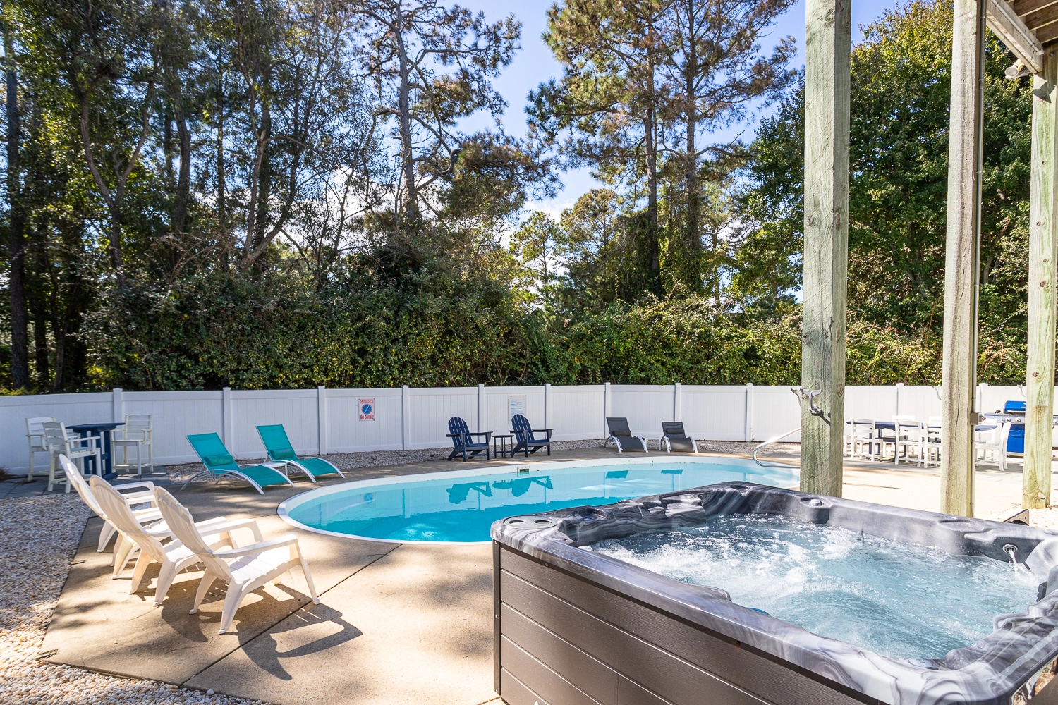 Outside, retreat from the heat with a refreshing dip in the sparkling private pool. Gaze up at the stars in the dark night sky while relaxing in the six-person hot tub. The Corolla Light Community features a large catalog of amenities during the summer season, including multiple community pools, tennis courts, playgrounds, walking trails, a trolley, and much more. For the golfers in your group, discounted golf is available at the Kilmarlic Club. Outer Banks vacation memories are yours to keep after your stay at “Drift Away OBX!”