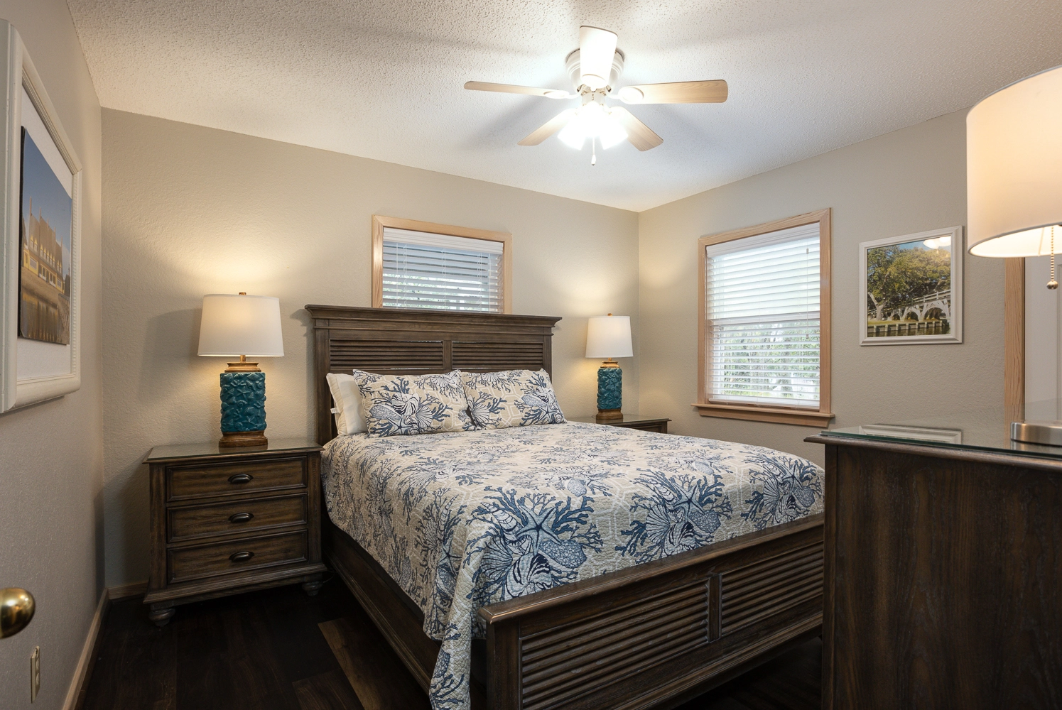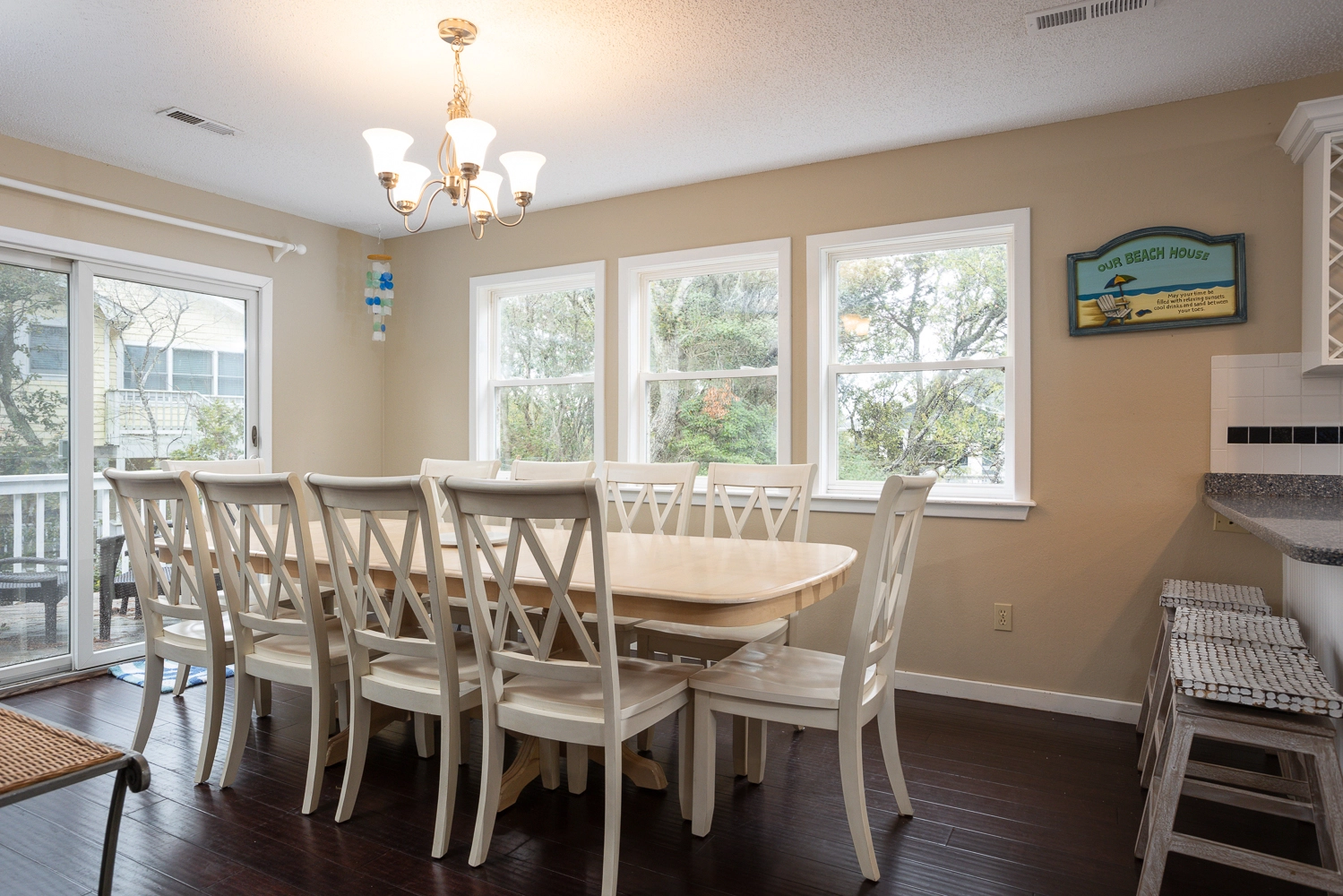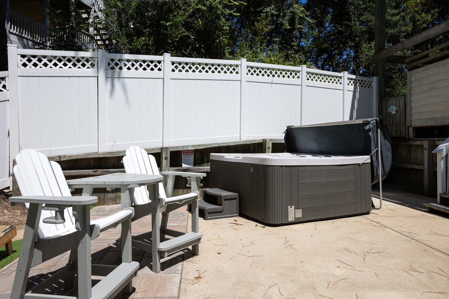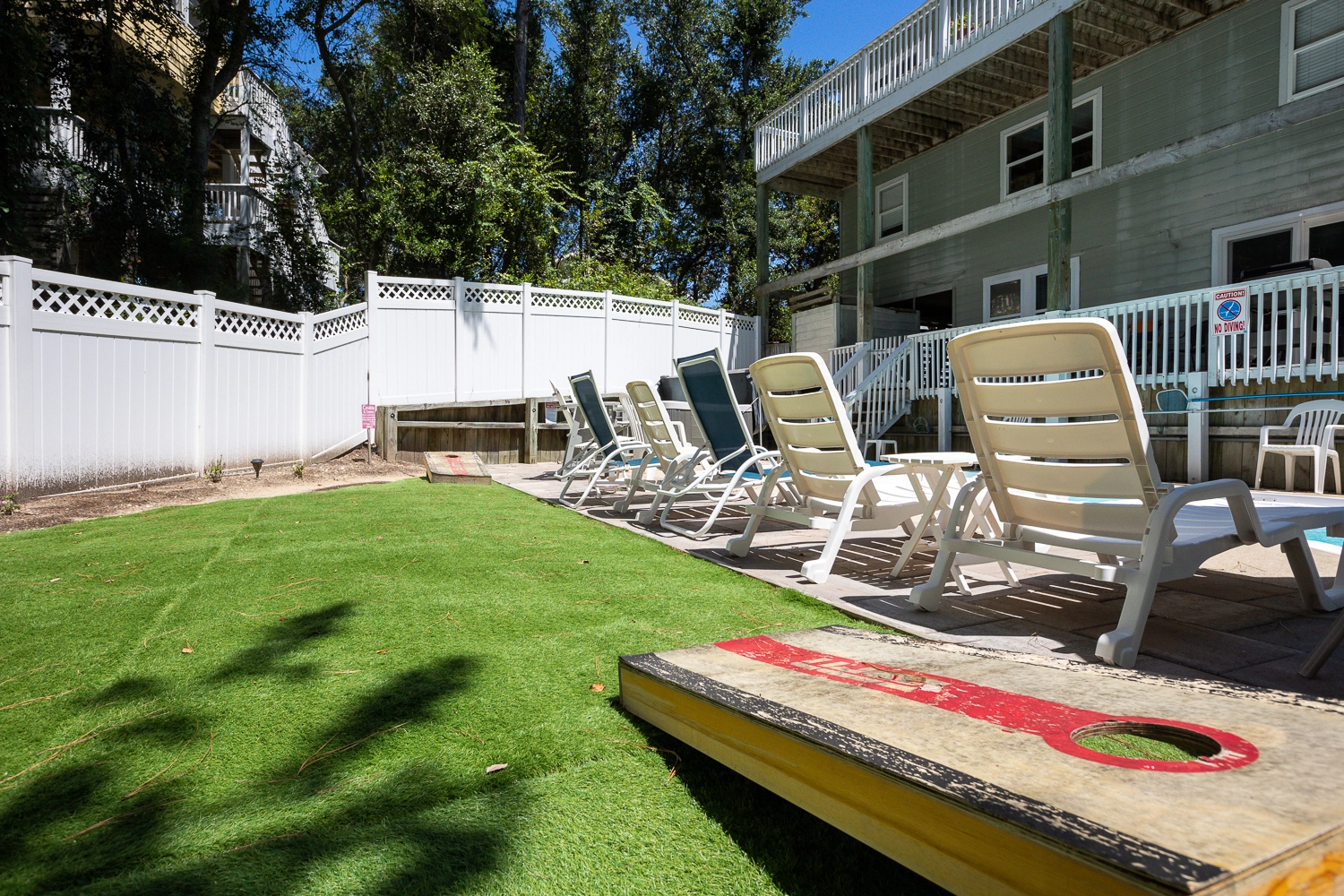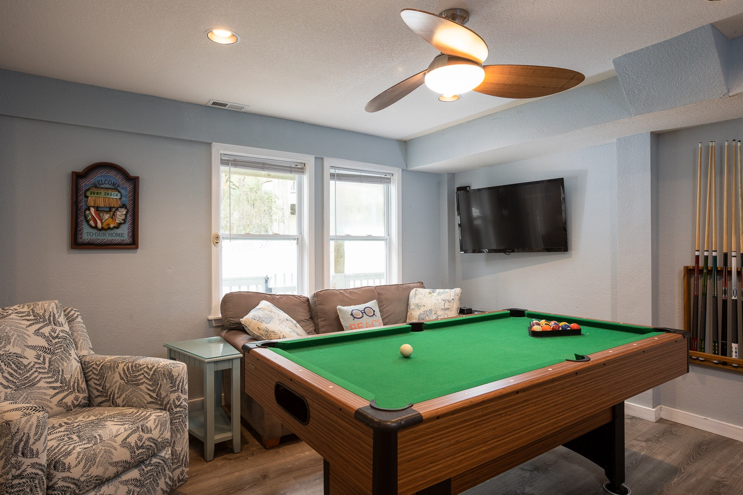Step outside of the rec room door to the outdoor oasis. Make a splash in the private pool or enjoy a restorative soak in the hot tub. The beautifully landscaped pool area features a variety of seating options, including a table and chairs that is perfect for lunch by the pool. Grassy areas around the pool host a cornhole game and a hammock for going to the next level of relaxation. In addition to the amenities at the vacation home, Corolla Light offers a plethora of community amenities and activities. Trolley service throughout the community is available during the summer months, so no need to worry about finding parking at the oceanfront pool complex, soundfront pool, or fitness center with indoor pool. With the perfect mix of relaxation and amenities, “Fern Gully” is sure to leave our guests relaxed with treasured Outer Banks vacation memories!