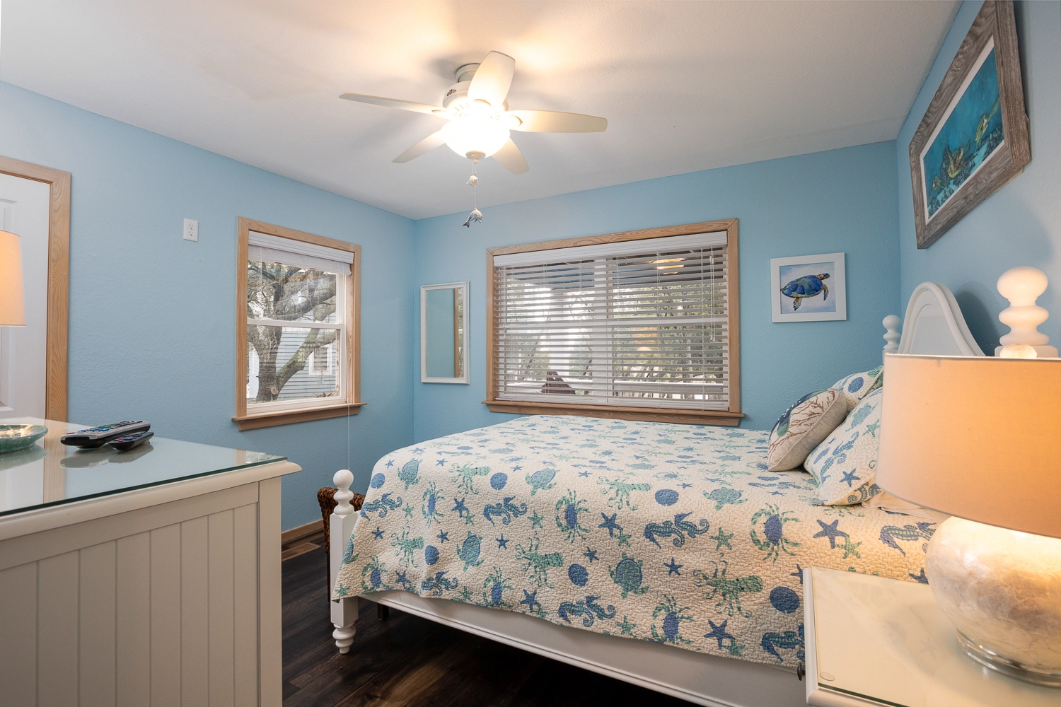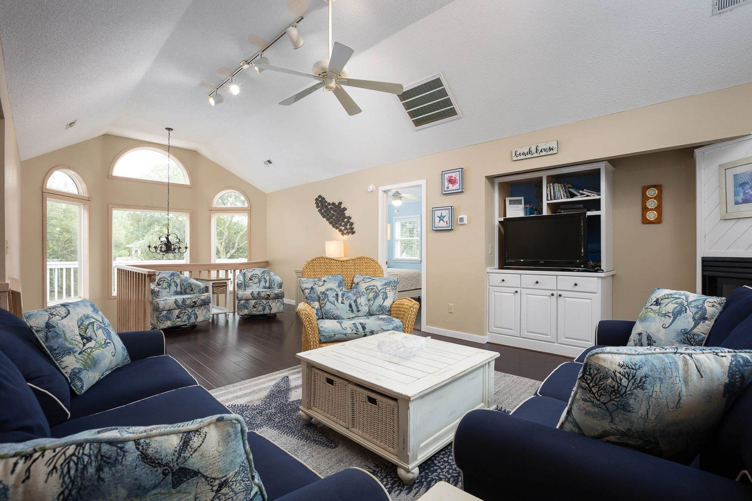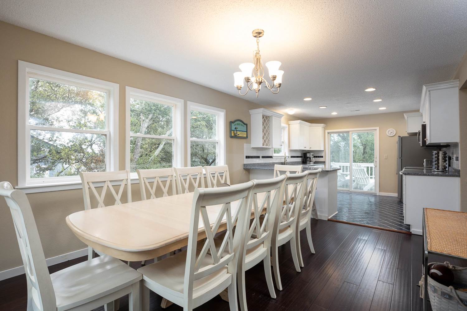 Gather your family for an unforgettable OBX vacation at “Fern Gully!” Situated on a quiet cul-de-sac, this home is centrally located close to the beach, the sound, and an abundance of amenities in the Corolla Light Community. Offering both privacy and convenience, there’s something for everyone at this spacious beach home that features cheery coastal decor throughout.