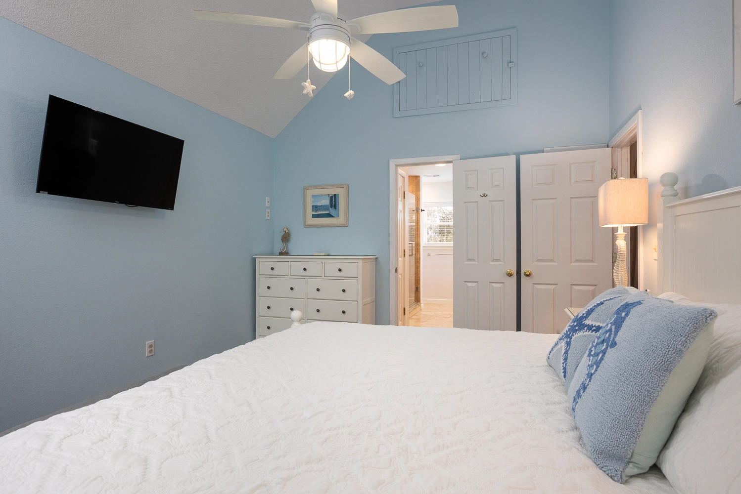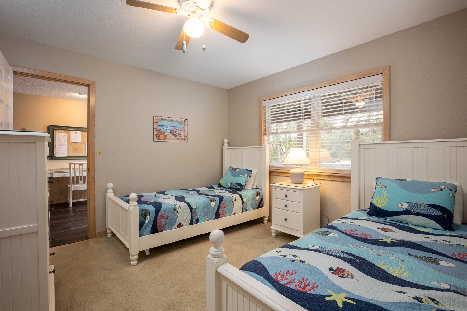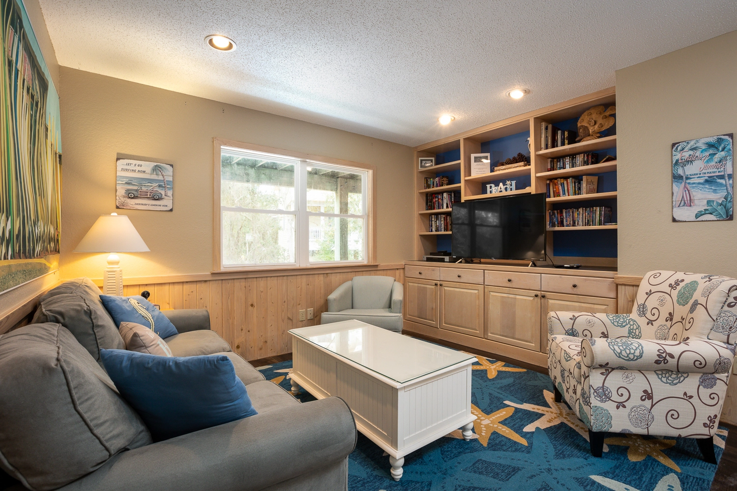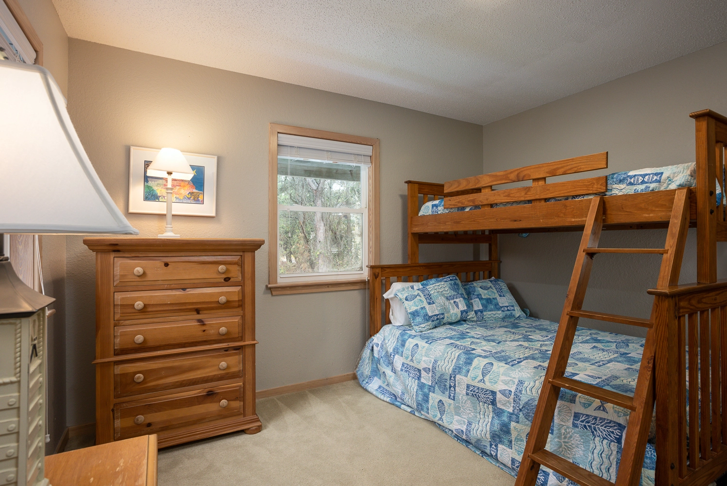 Gather your family for an unforgettable OBX vacation at “Fern Gully!” Situated on a quiet cul-de-sac, this home is centrally located close to the beach, the sound, and an abundance of amenities in the Corolla Light Community. Offering both privacy and convenience, there’s something for everyone at this spacious beach home that features cheery coastal decor throughout.