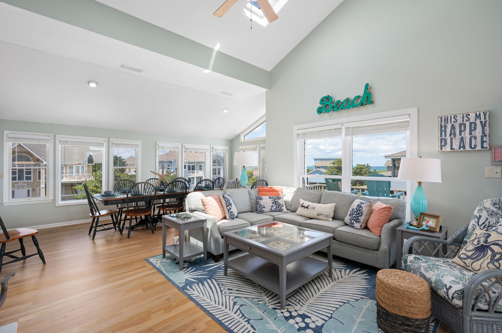With the convenient community amenities of the Corolla Light Resort available for your use, including 4 outdoor oceanfront pools, basketball and volleyball courts and onsite dining at the Oceanfront Grill, all right around the corner, Happy Daze is the place to gather your family and friends for a relaxing time of sun and fun. Happy Daze is within walking or biking distance to the Corolla Light Town Center, Historic Corolla Park, Whalehead Club, and Currituck Beach Lighthouse! Whether you prefer to spend your vacation inside or out, Happy Daze has everything you are looking for and will have you coming back each year to create more memories of happy days!