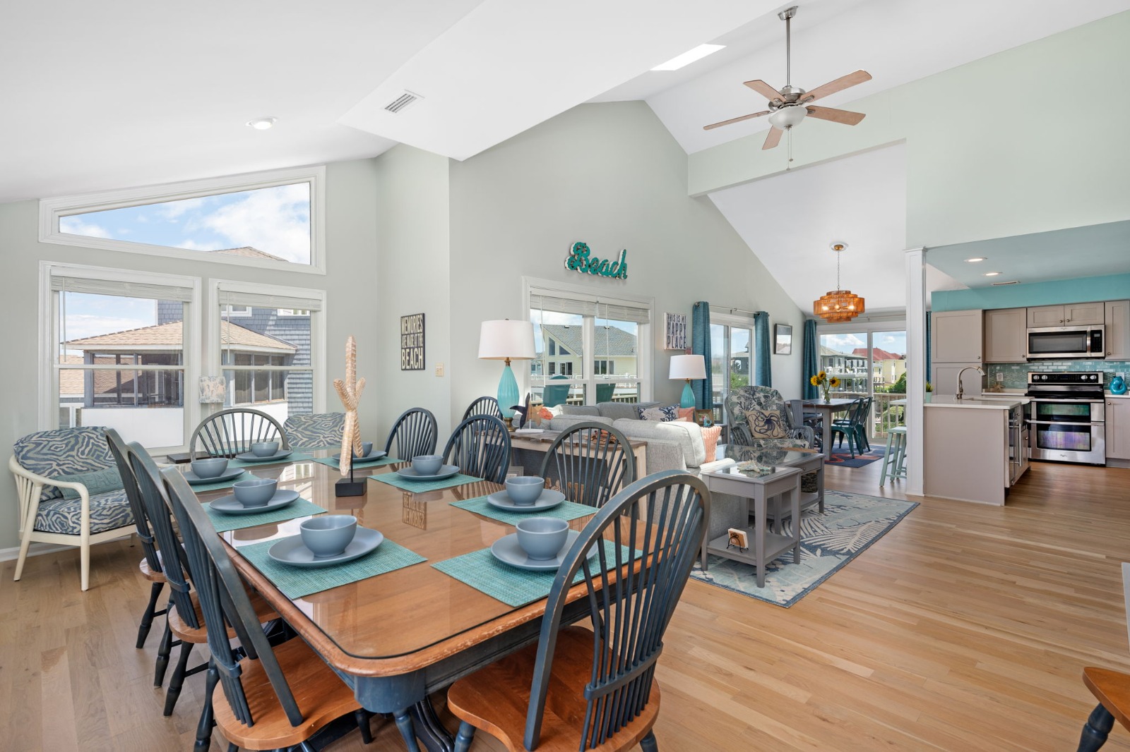 Beds: 3 Kings, 2 Singles, 2 Bunk Sets – Sleeps 12 max. Baths: 3 Full, 1 Half Bath