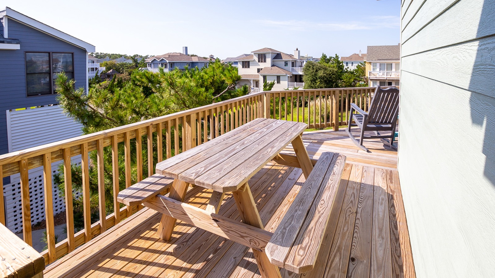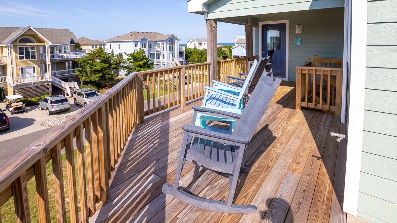 Happy Daze provides numerous decks to soak up the ocean sunrises, or lighthouse sunsets, while watching your family and friends take advantage of the exclusive atmosphere of the awarding winning Corolla Light Resort! The expansive decks provide ample space to relish the serene setting created by the green space directly behind the home, giving you privacy and a perfect backdrop for your ultimate OBX beach vacation.