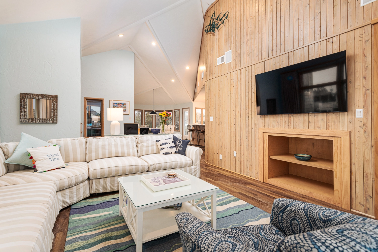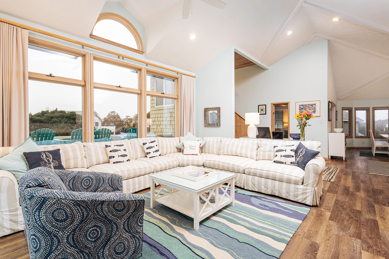 Relax, you’re now on “Island Time” on the OBX! This attractive oceanside home has everything your family needs to have an amazing Outer Banks vacation. Located just a few houses from the beach, the community beach walkway is a short walk away. The home features many common spaces, both inside and outside, for your group to gather together or spread out.
