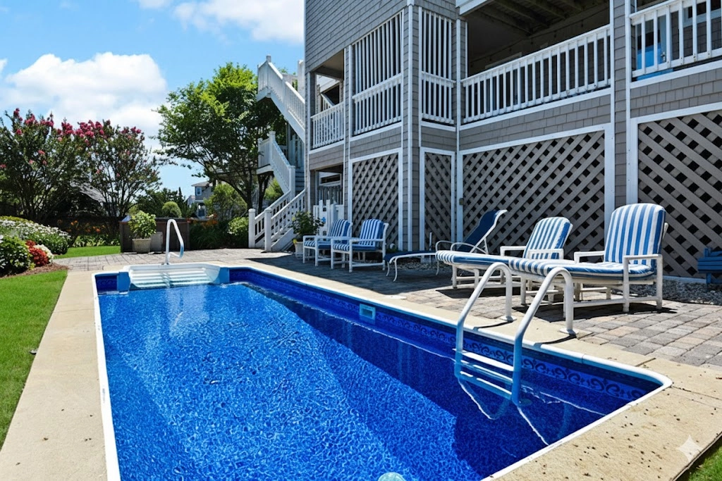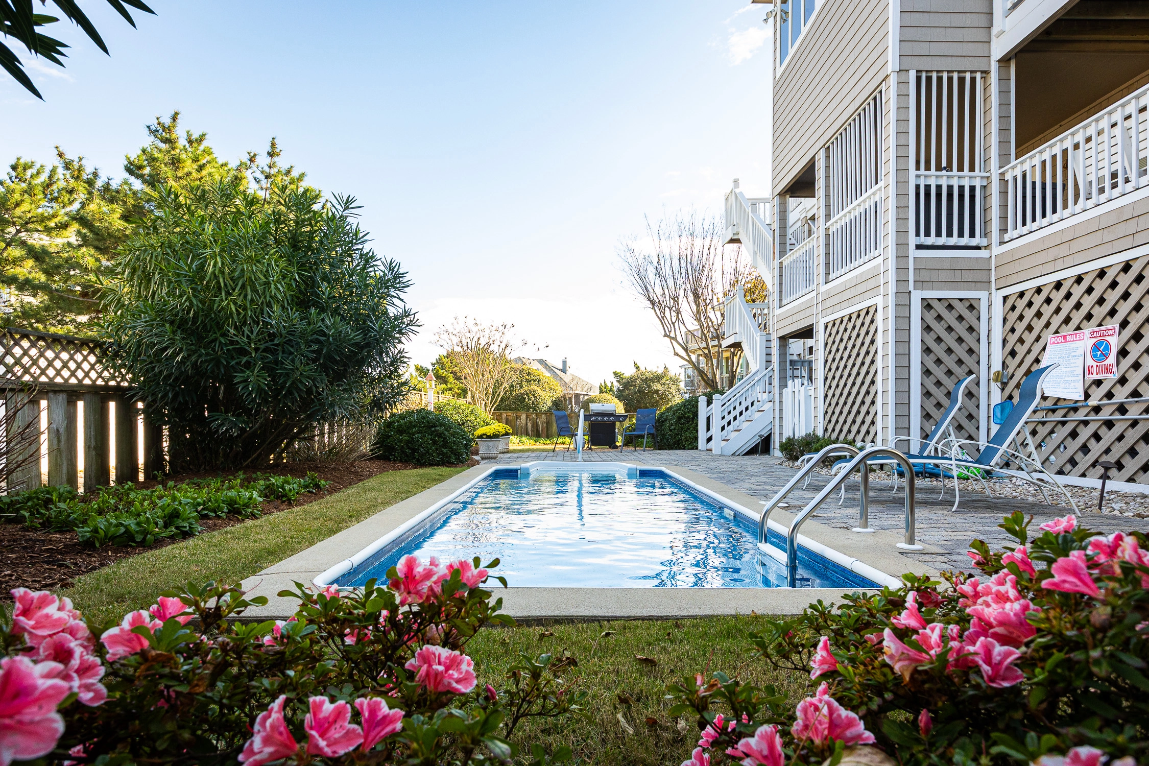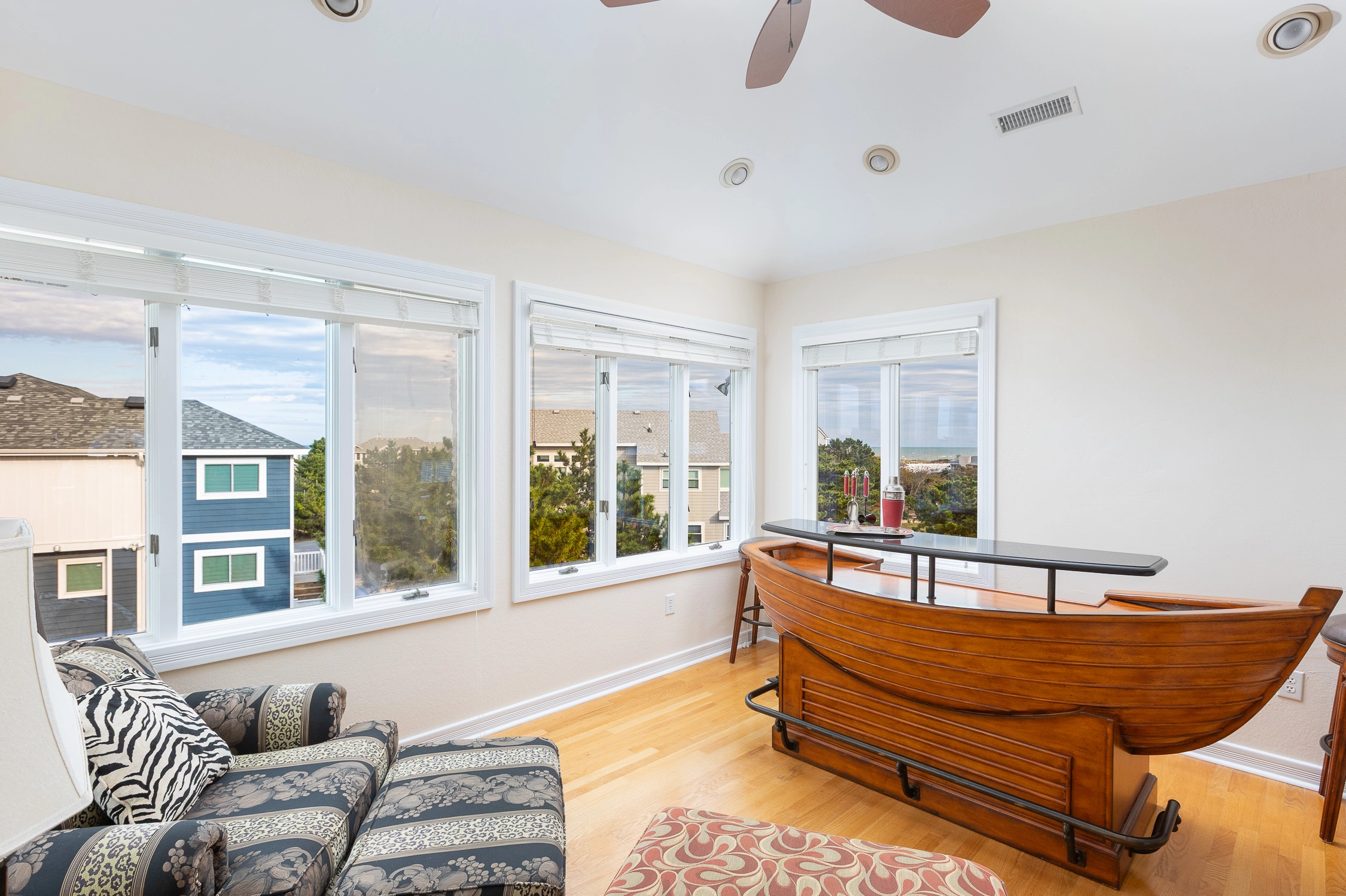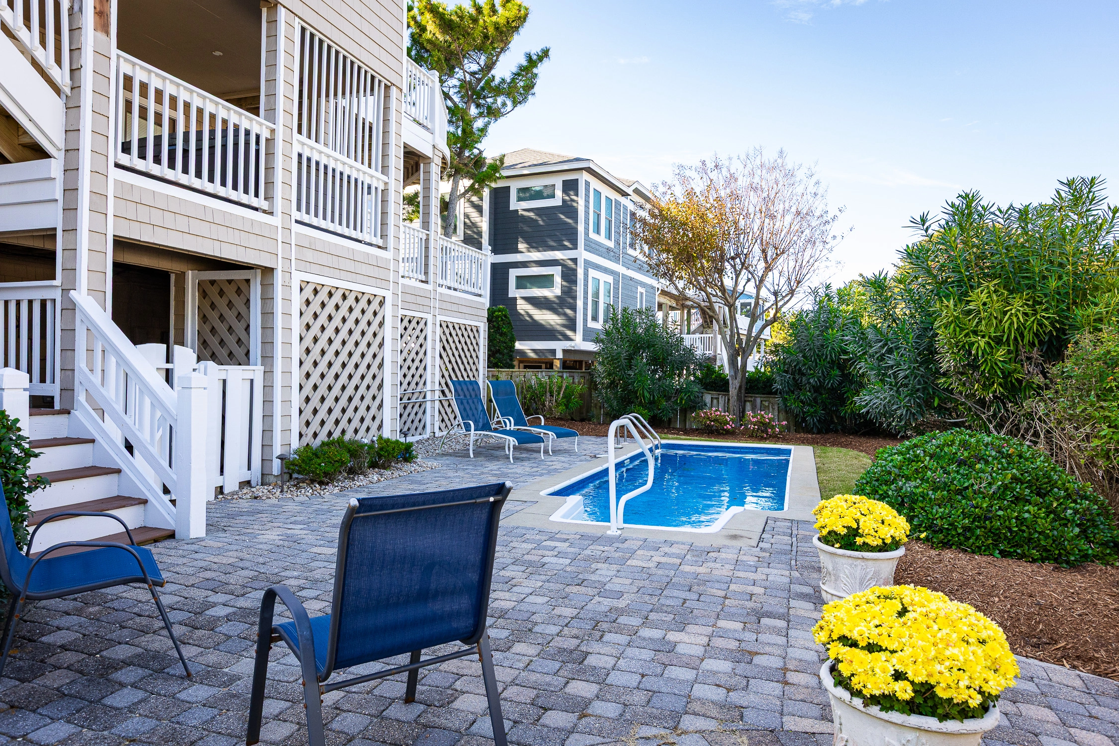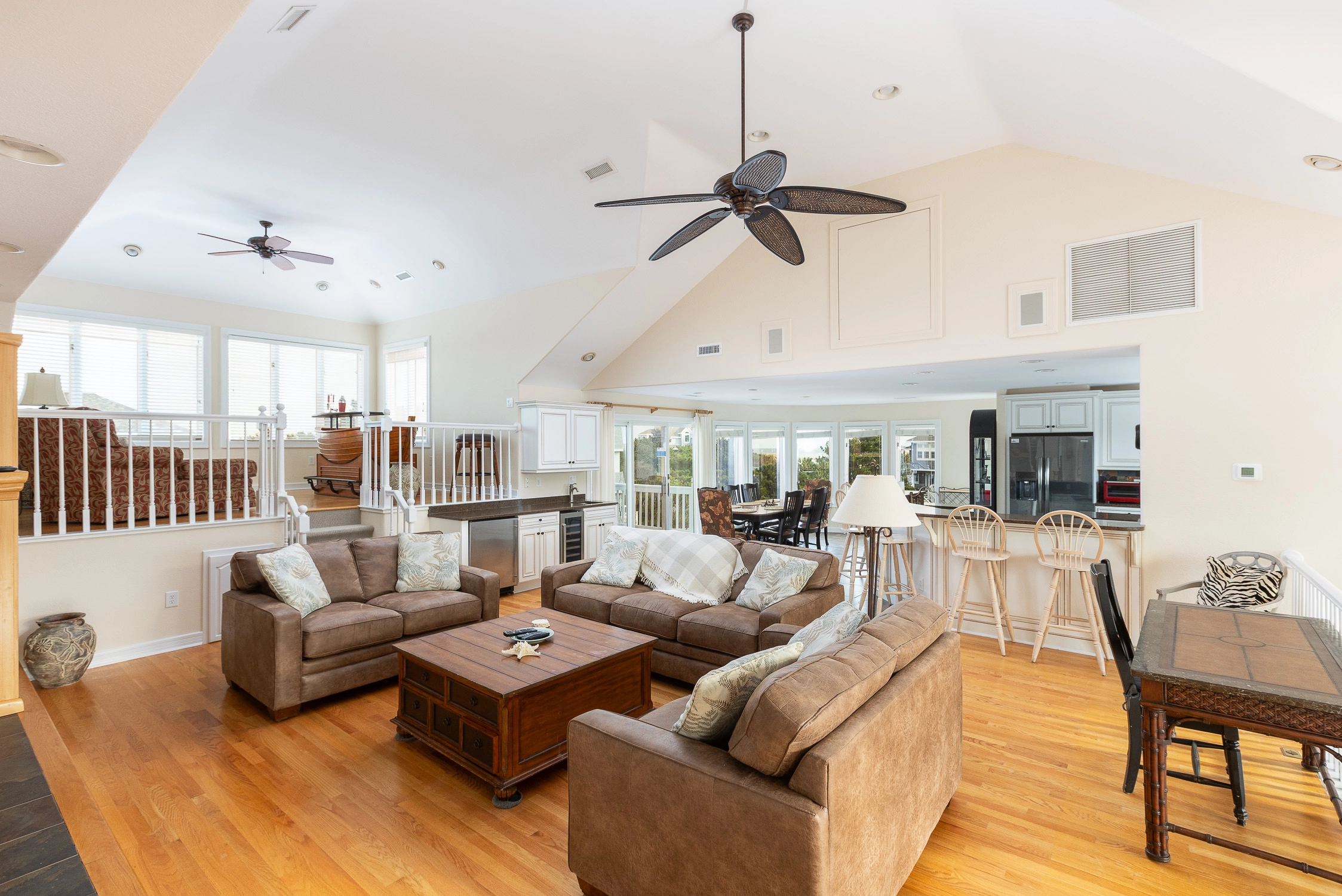 The home’s outdoor space is a private oasis. The fenced pool area is beautifully landscaped with plenty of room to spread out and added privacy from your neighbors. There are decks off all levels of the home so your family members can all enjoy the space together, find a quiet spot all to themselves, or relax in the hot tub. Guests have full access to Corolla Light's modern 36,000 square foot sports center, featuring a 25-yard heated pool and 12-person jetted spa, health-club quality weight and workout rooms, indoor tennis courts, racquetball, yoga and bungee fitness classes, ping-pong room, full-sized locker rooms, saunas, and Wi-Fi.
