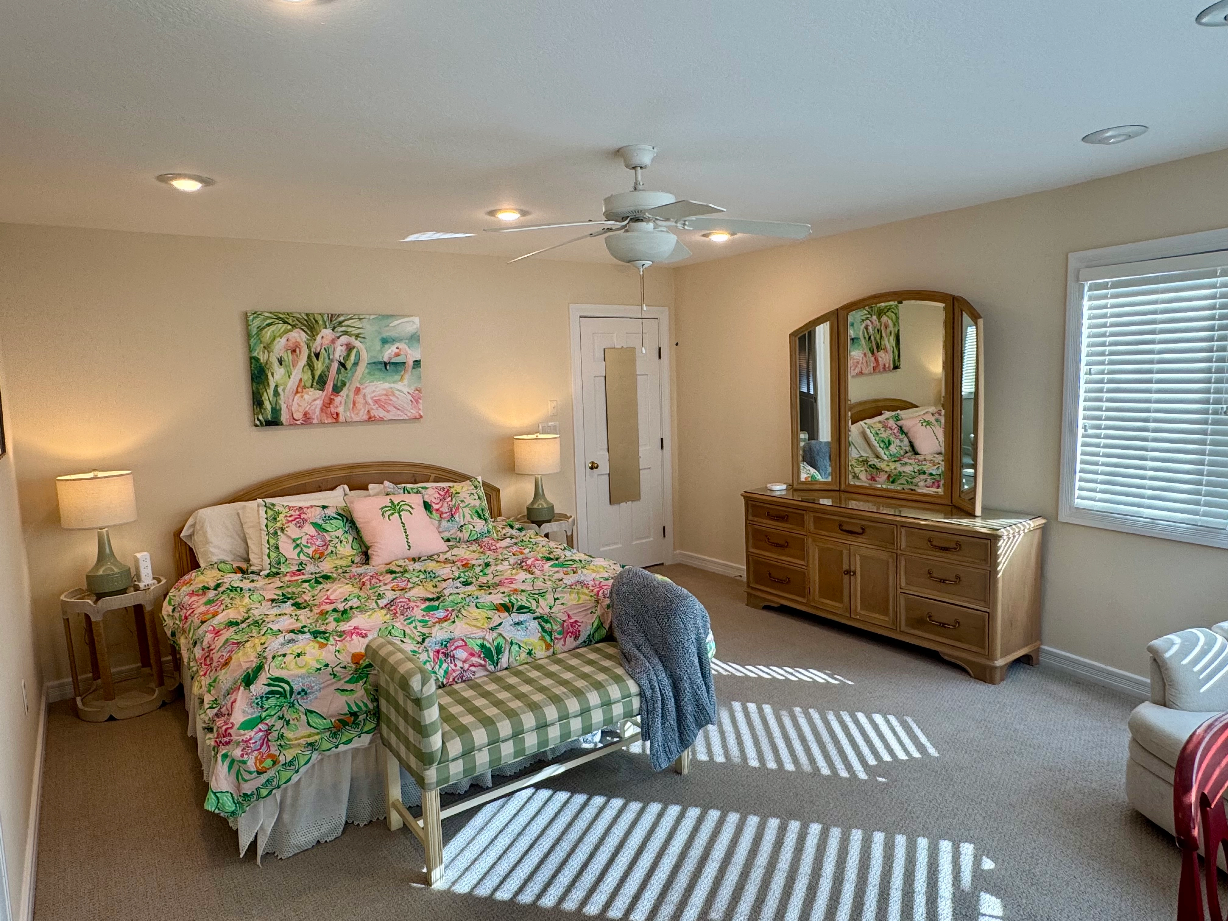 The family living space is roomy, bright, and nicely furnished. The chef in the group will be delighted by the well-appointed kitchen where creating meals will be a breeze! You can cuddle up for a movie in the den or challenge each other to a game of pool in the billiards room. Multiple TVs are available throughout the home for your viewing pleasure.