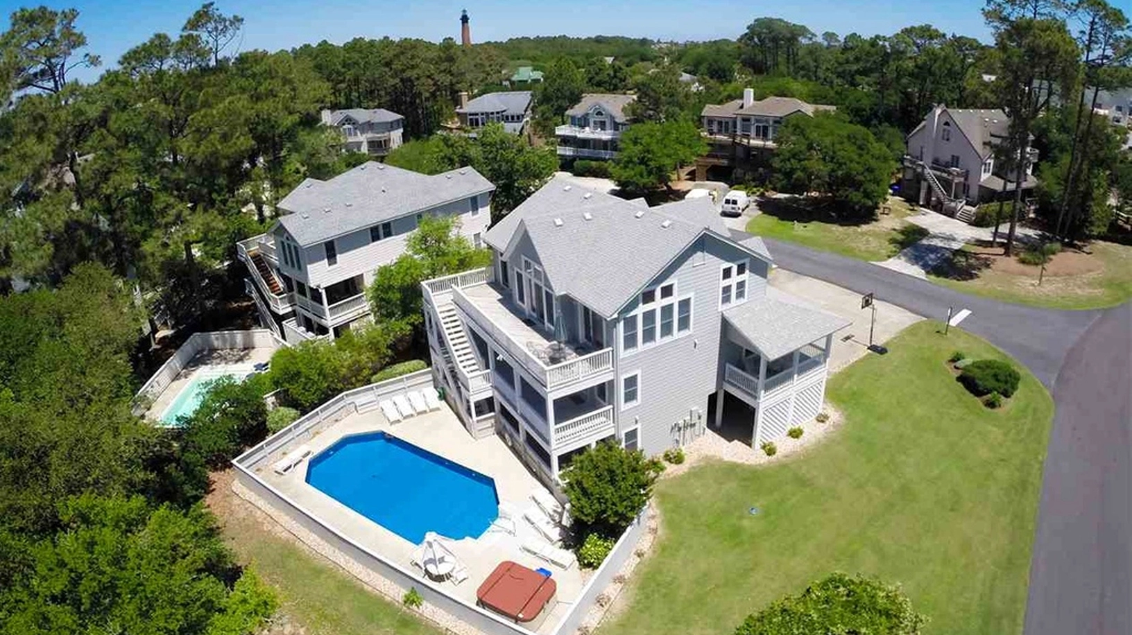 This home is adjacent to the Currituck Beach Lighthouse and The Whalehead Club, which hosts many family events, tours, and music festivals throughout the year. Directly across the street is the Corolla Light Town Center where you will find various restaurants, shops, an arcade, and putt-putt.