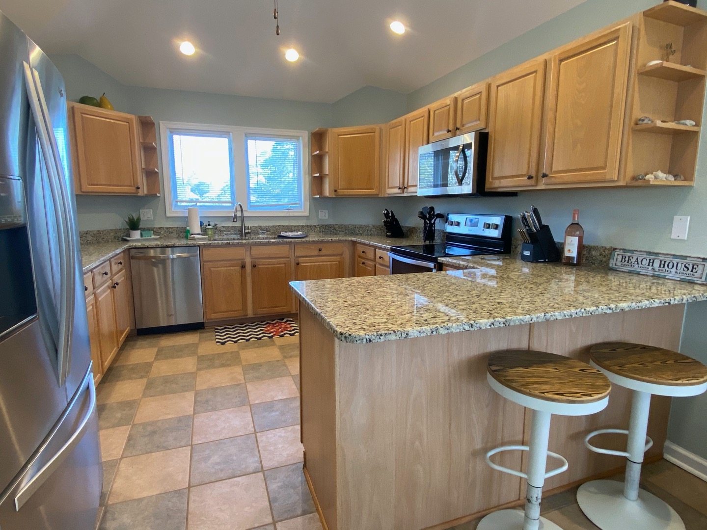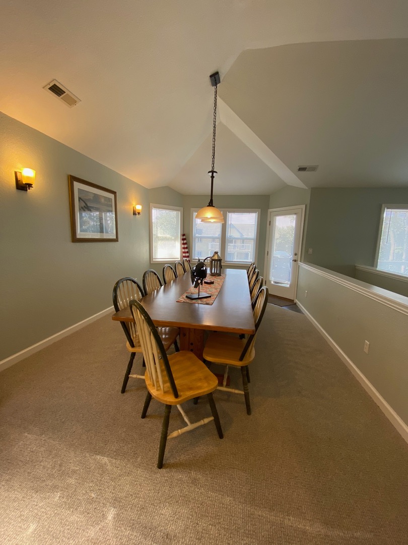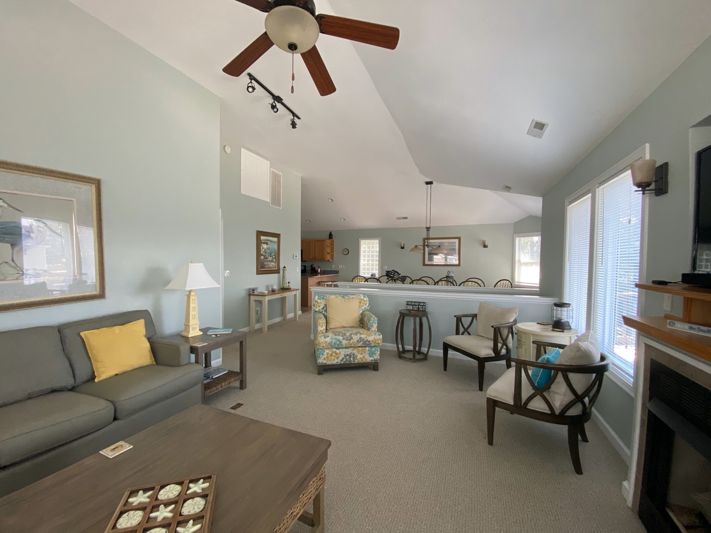 Sounds Good to Me hosts a reverse floor plan highlighting sound views from the living and dining areas and kitchen on the top floor. Our well stocked kitchen is open to the dining room and family room. Seating for 12 allows your family to enjoy dining together. The top level also has a spacious king master suite and beautiful decks to enjoy the sound breezes and sunset over the Currituck Sound.