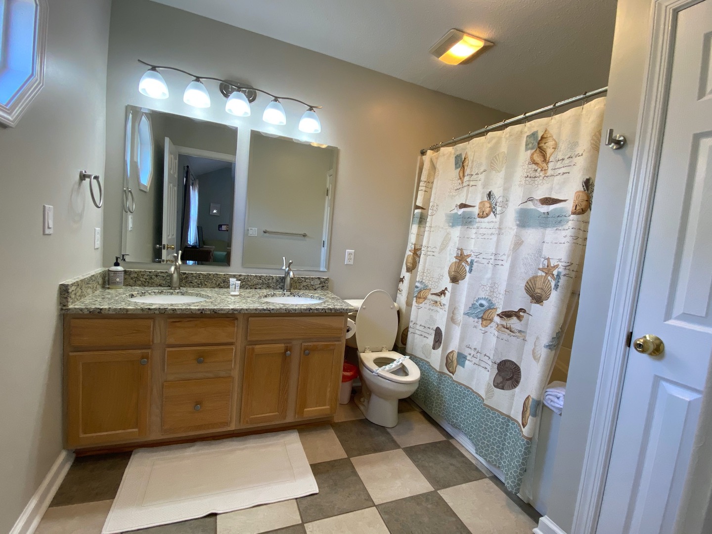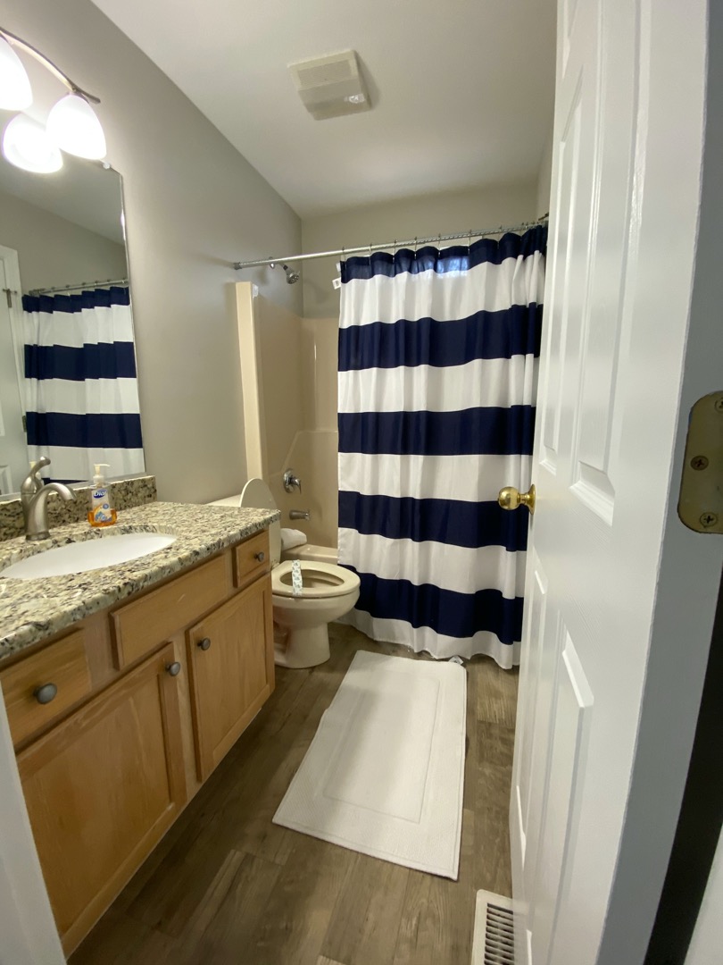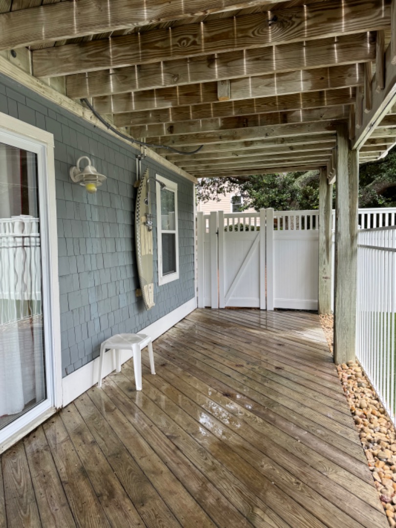 The mid-level includes a king master suite, two additional queen bedrooms, full bath, and a den perfect for hanging out, reading, gaming or catching a nap. The washer and dryer is also on this level. Step out onto the front mid-level deck to enjoy our porch swing and lounging in the hammock.