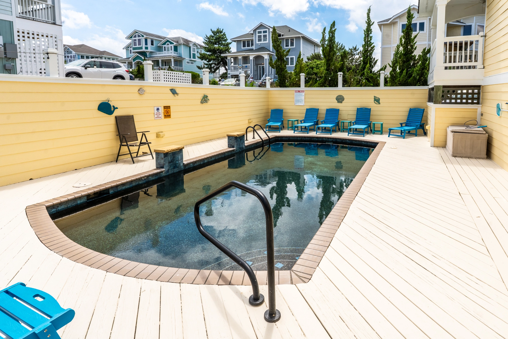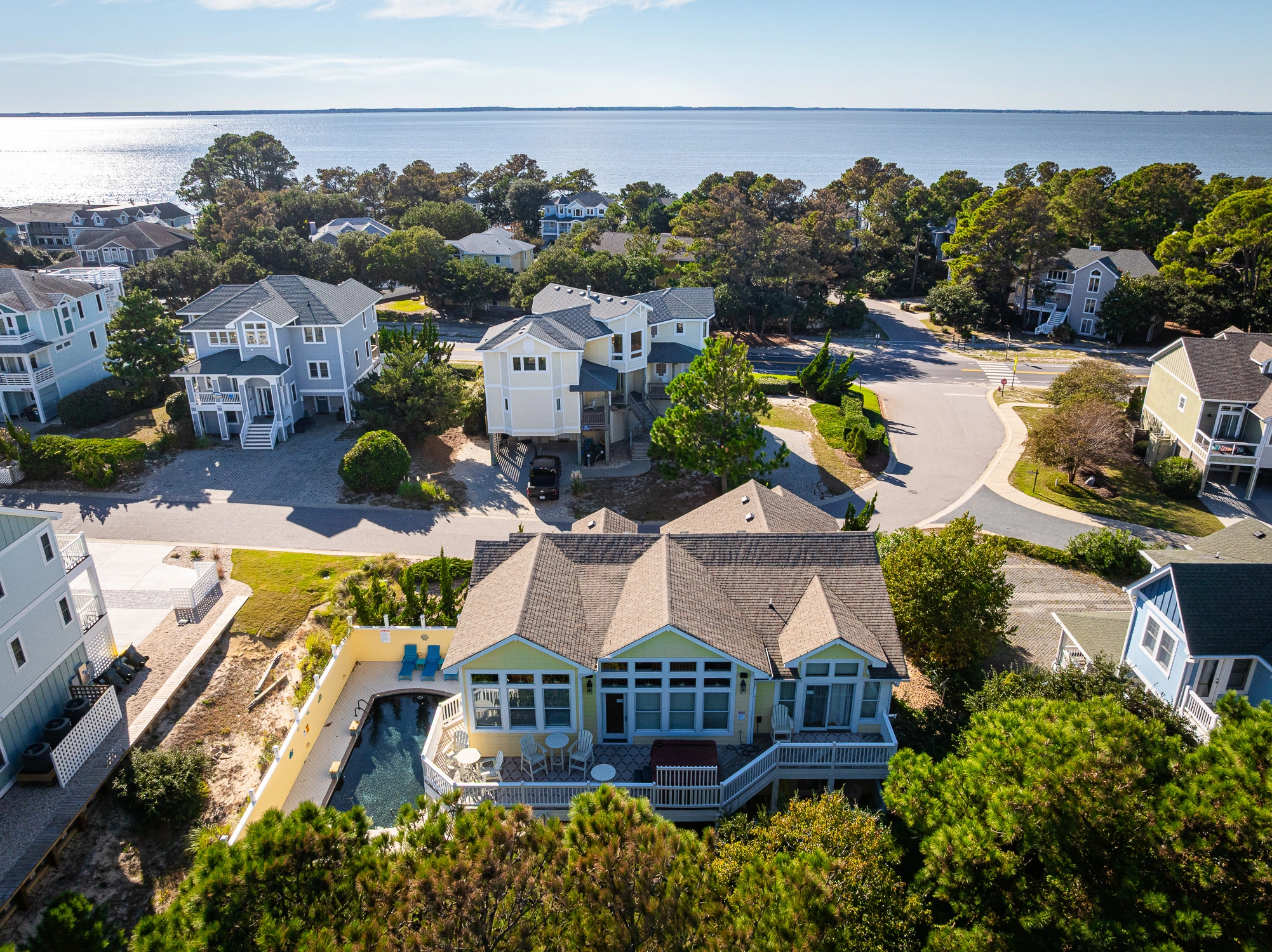 Outside, cool off with a refreshing dip in the private pool or soak up the sun poolside. In addition to the amenities provided at the home, the Corolla Light community has an impressive catalog of amenities to choose from. The Oceanfront Complex offers multiple pools, beach access, a clubhouse, a playground, basketball courts, shuffleboard, and a volleyball court. The Sports Center includes an indoor heated pool, hot tub, tennis courts, a gym, and more. Other amenities within the community include a soundside pool, nature trails, tennis, and pickleball courts. During the summer, Corolla Light offers a trolley that runs throughout the community to transport you to and from the beach, community pool, fitness center, and more. The nearest trolley stop to this home is approximately 50 feet from the front door.