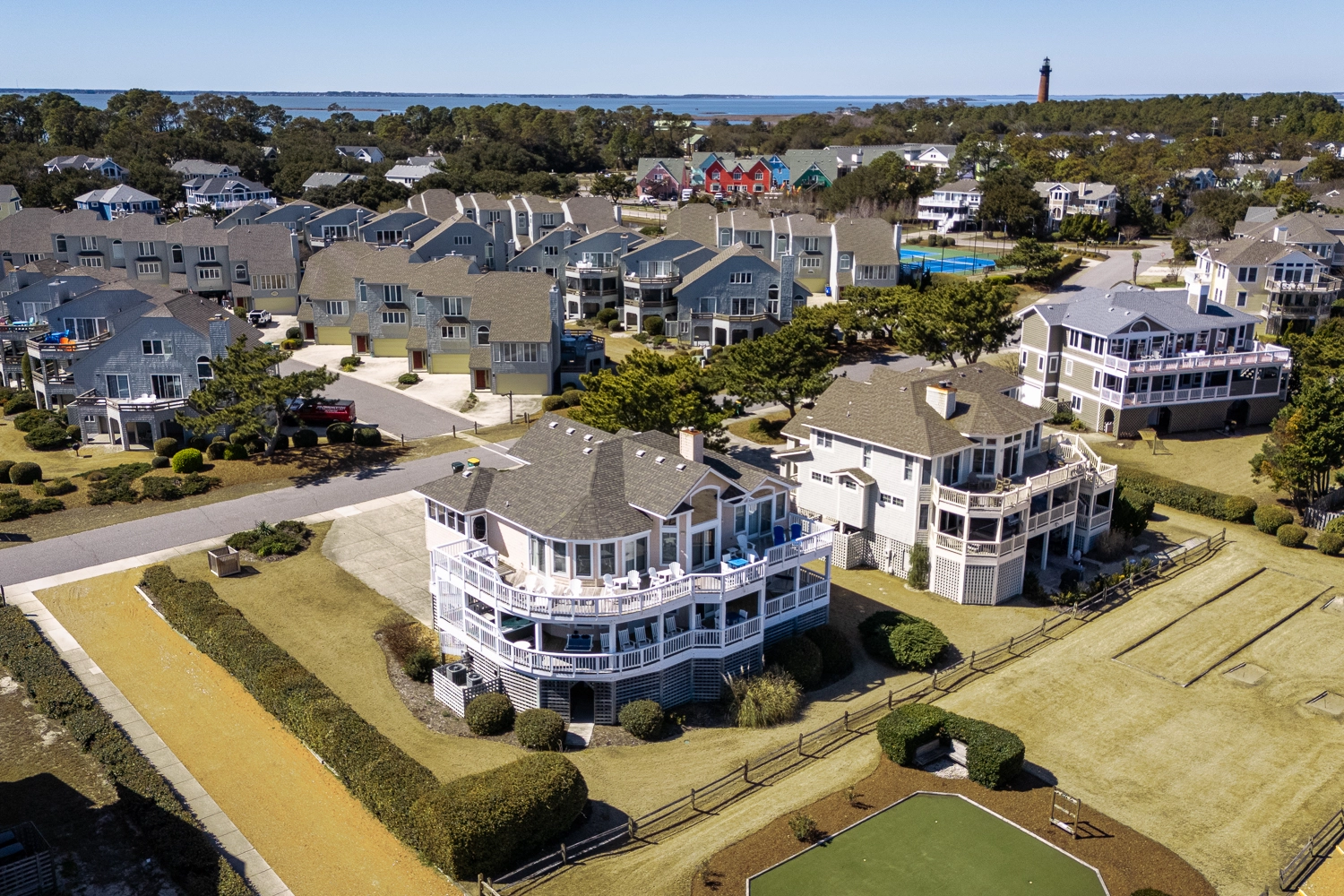 Beyond the community, the charming town of Corolla beckons with its unique shops, delectable dining options, and historic sites like the Currituck Beach Lighthouse. Outdoor enthusiasts can explore nearby nature trails, embark on wild horse tours, or engage in water sports along the pristine shoreline.