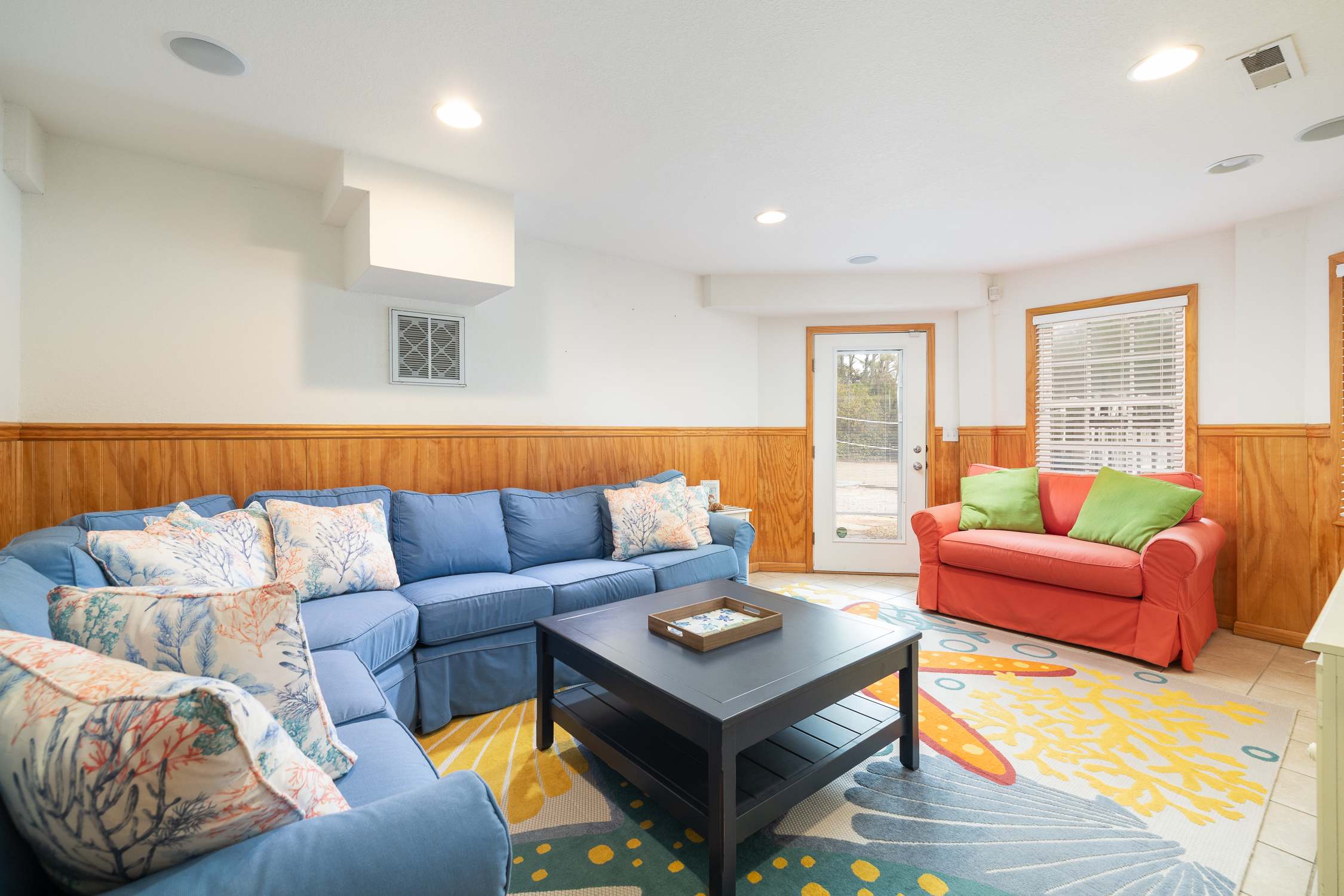 On the second level, you'll find many beautiful and comfortable bedroom accommodations for your group. Two king bedrooms features a private ensuite full bath. Another full hall bath is available for added convenience. Remaining rooms include a bunk room (sleeps 4) and a queen/twin room (sleeps 3), each offering a place to recharge after long beach days. An extra queen sleeper sectional sofa awaits with a half bath on the first level, a bonus for larger groups.