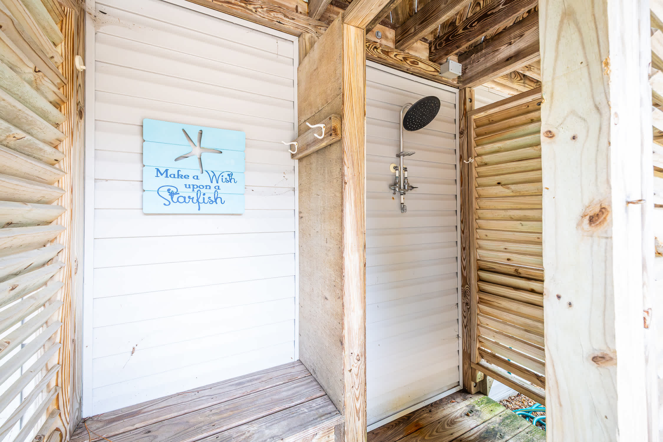 Outside you’ll find plenty more to enjoy! Unwind in the hot tub after a busy vacation day, or enjoy the private pool for a swim day right on site. Work on your suntan in one of the many loungers across the decks and pool area. There are plenty of opportunities for the competitors in your group to challenge each other; try a sand volleyball game, a round of hoops in the driveway, a corn hole tournament, or bocce! An outdoor shower is available to help keep the home comfortably sand-free during your stay.